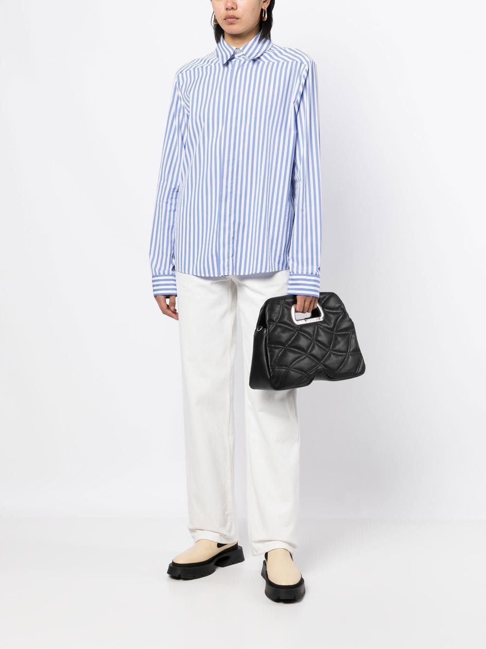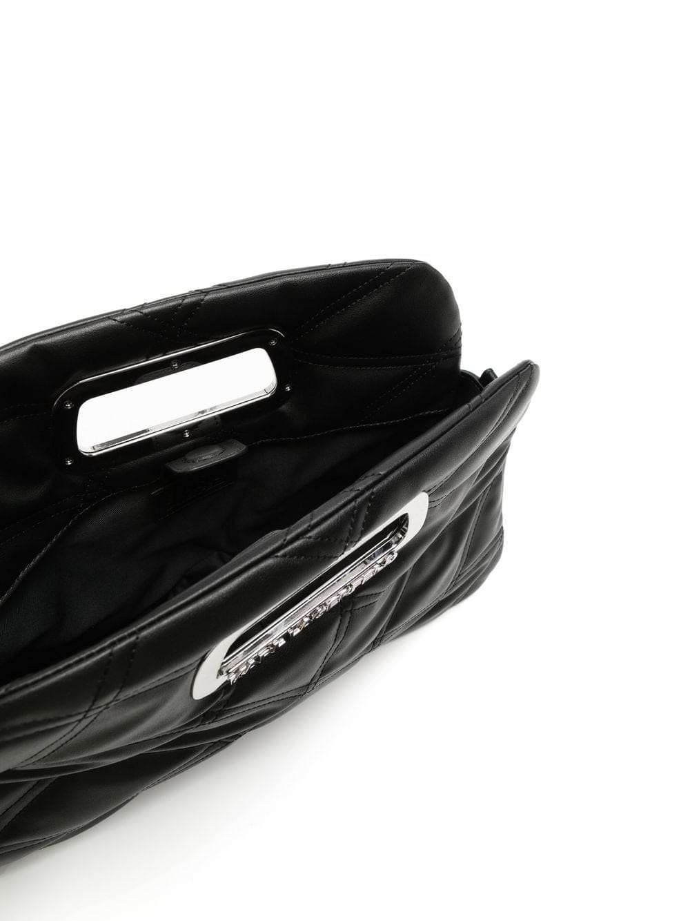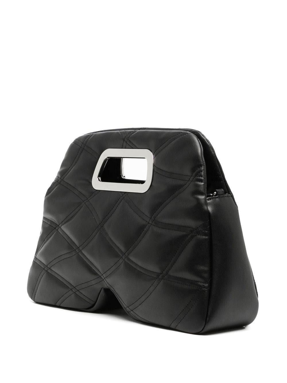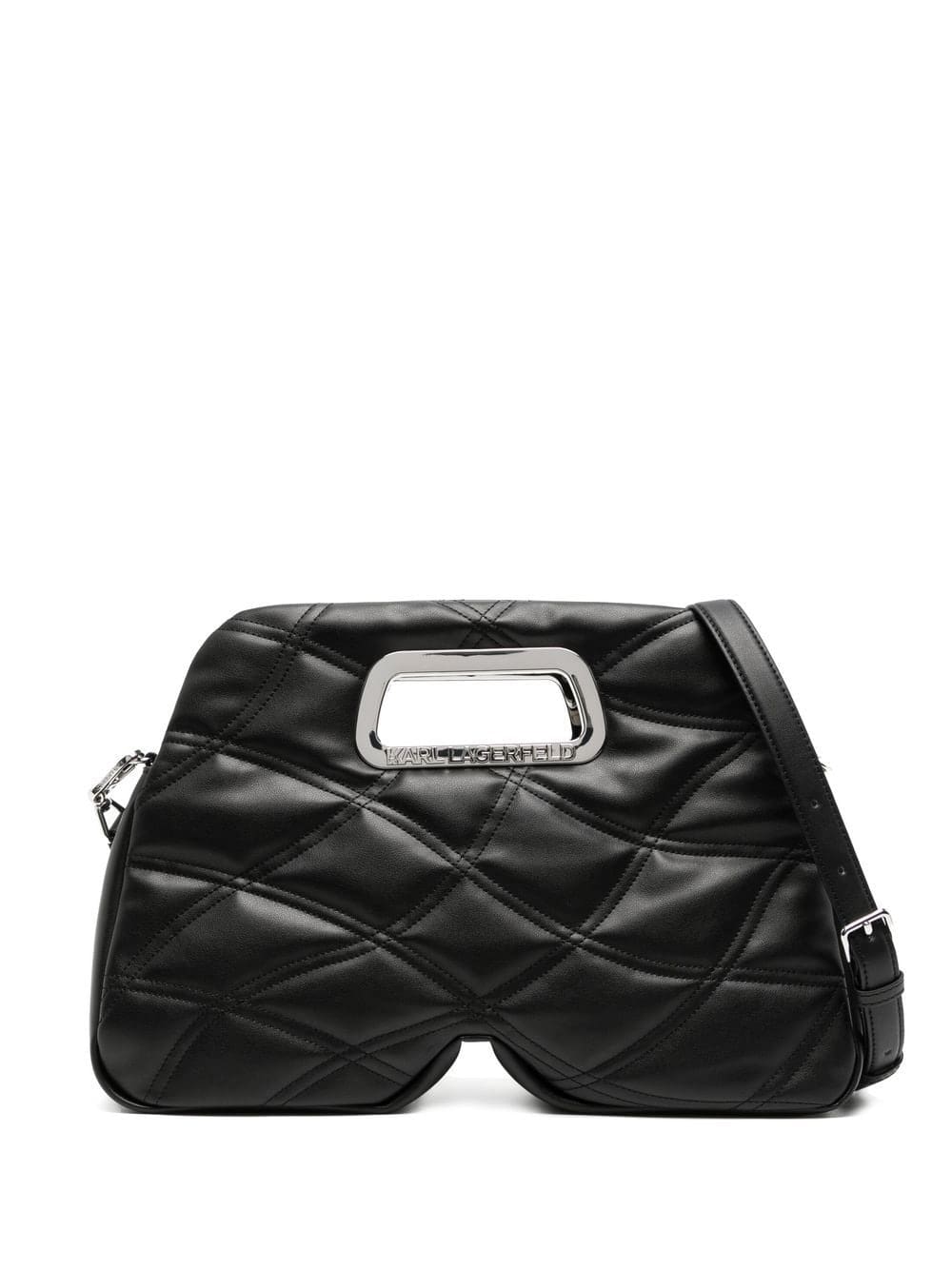 black quilted embossed logo to the front silver-tone hardware concealed magnetic fastening cut-out top handle adjustable detachable shoulder strap main compartment