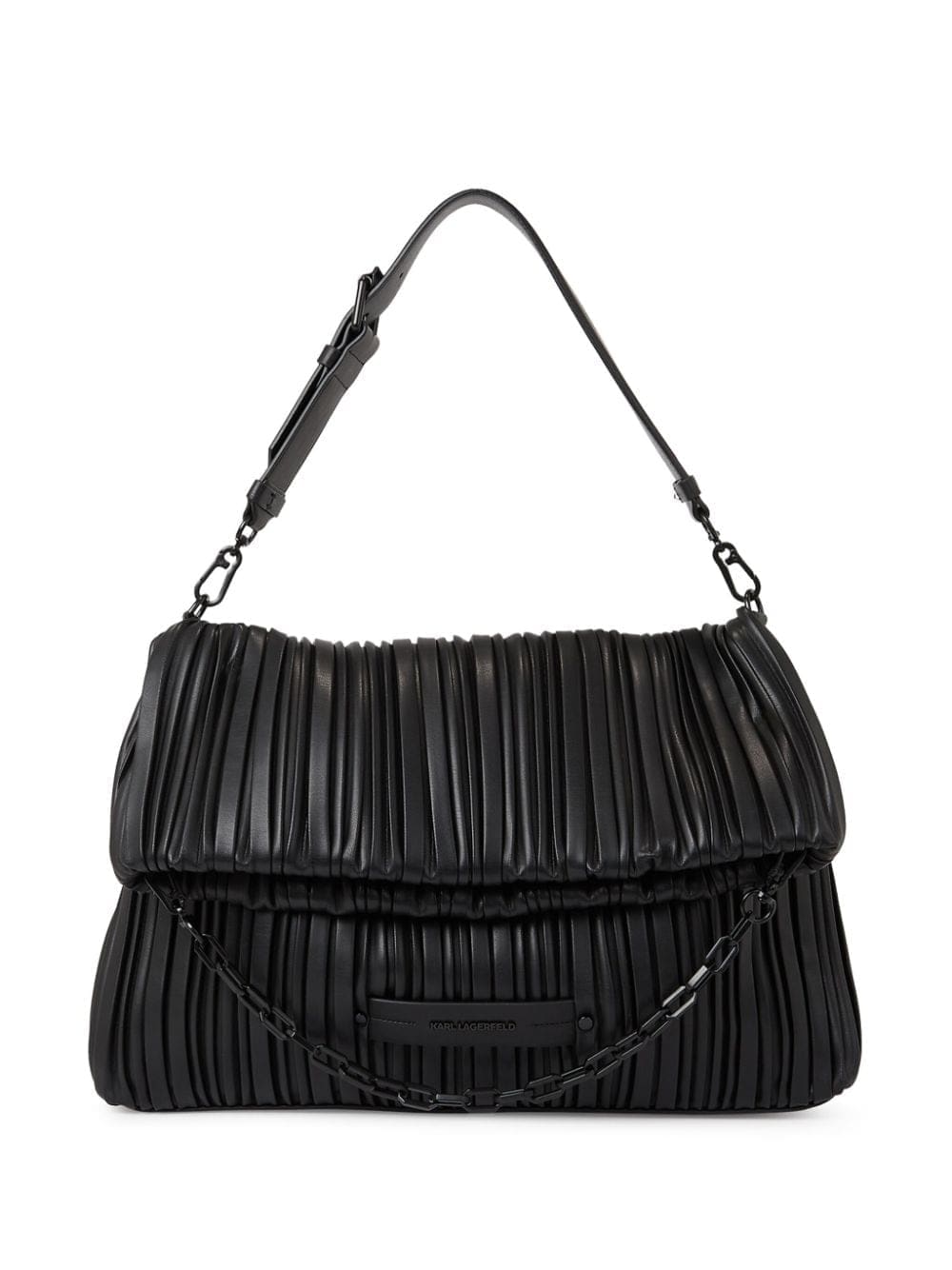 This K/Kushion tote bag from Karl Lagerfeld is crafted from recycled faux leather with a striking pleated effect throughout. It features a sleek and versatile folded silhouette combined with two detachable handles that offer multiple styling options.