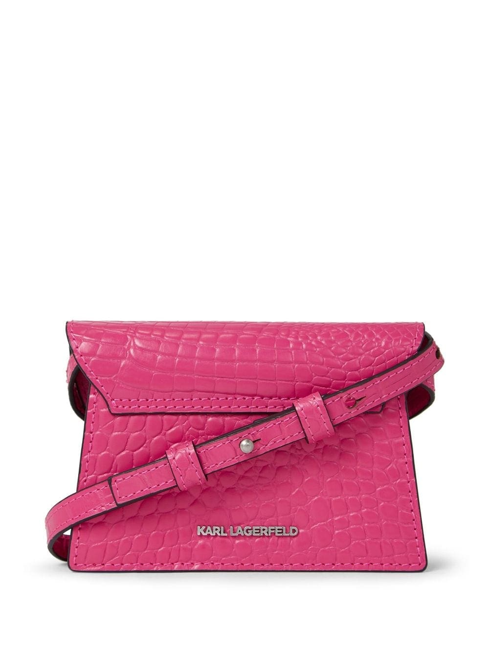 Karl Lagerfeld reimagines the Archive Fan shoulder bag in this pink iteration. Made from leather, it is distinguished by a crocodile effect that adds texture to the silhouette. At the front, the collection's logo plaque offers a branding final touch.