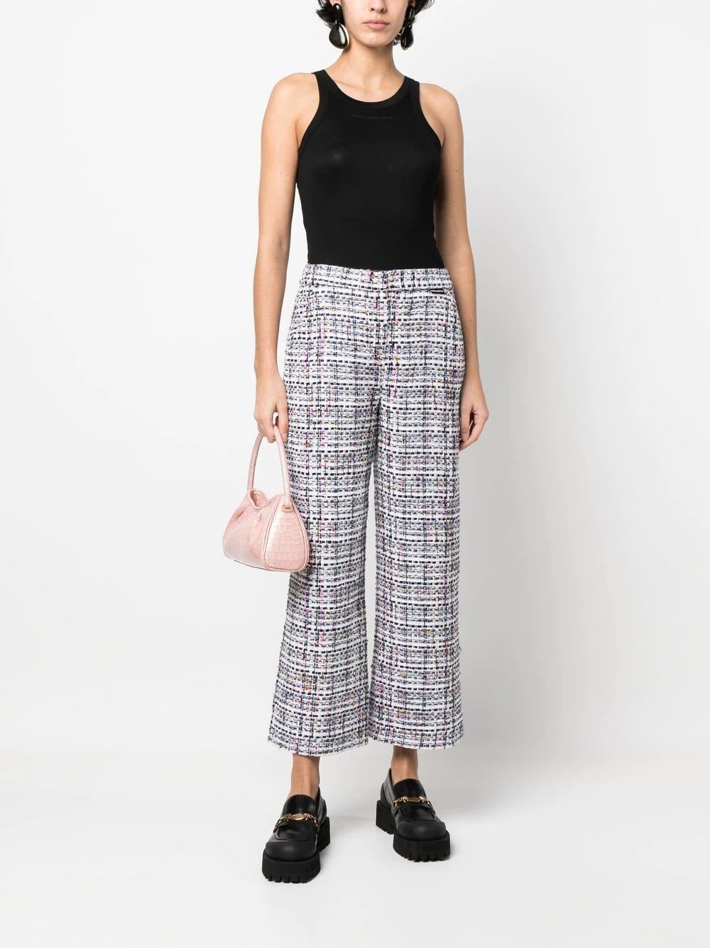 ribbed cotton tank top from KARL LAGERFELD featuring black, cotton, ribbed knit, embroidered logo at the chest, round neck, bell sleeves and straight hem.