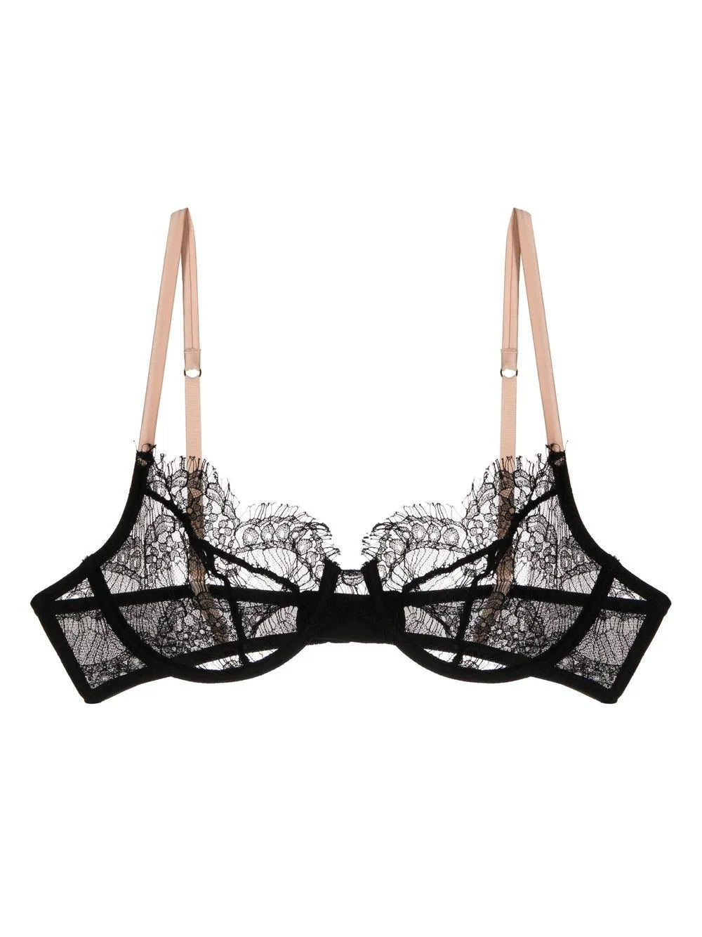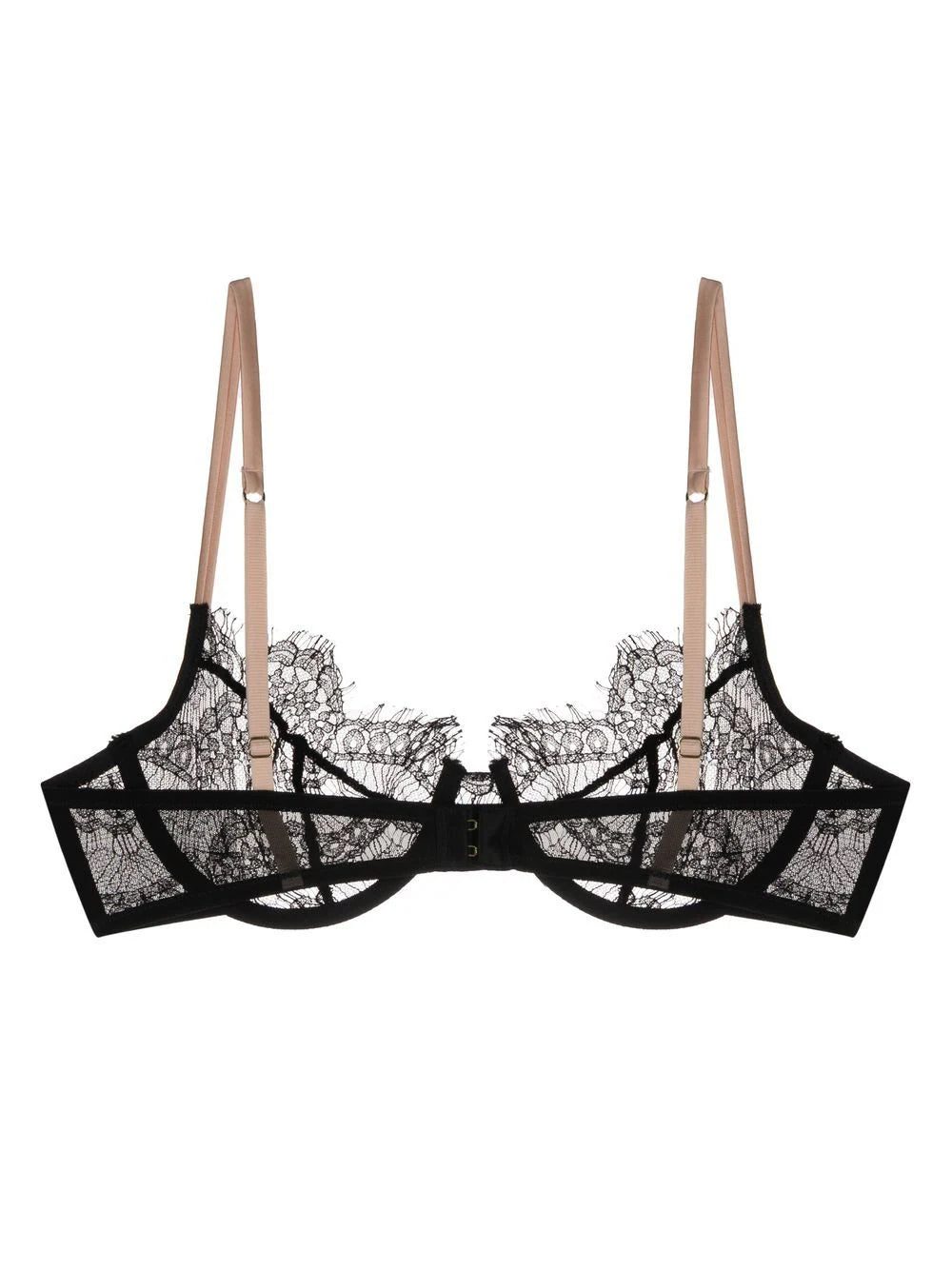 black/blush beige sheer lace panelling underwire cup adjustable shoulder straps rear hook and eye fastening bralette style