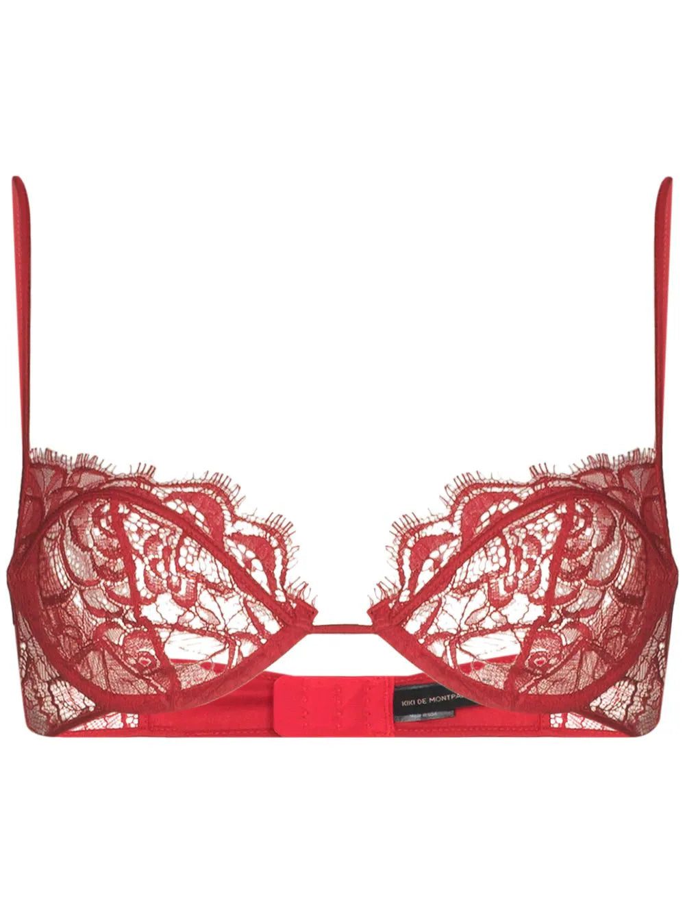 red cotton-blend/silk-blend semi-sheer construction lace detailing underwire cup adjustable shoulder straps rear hook and eye fastening