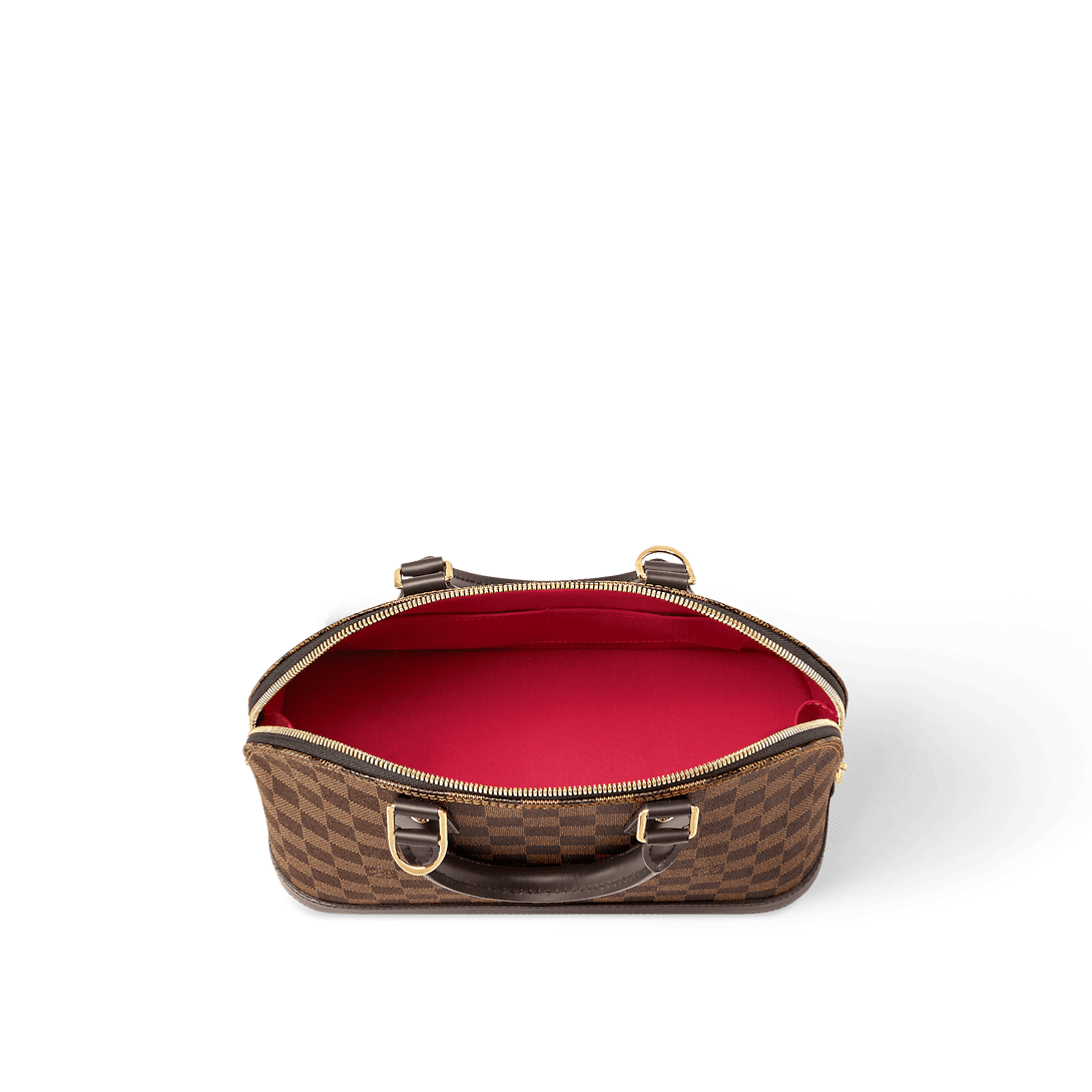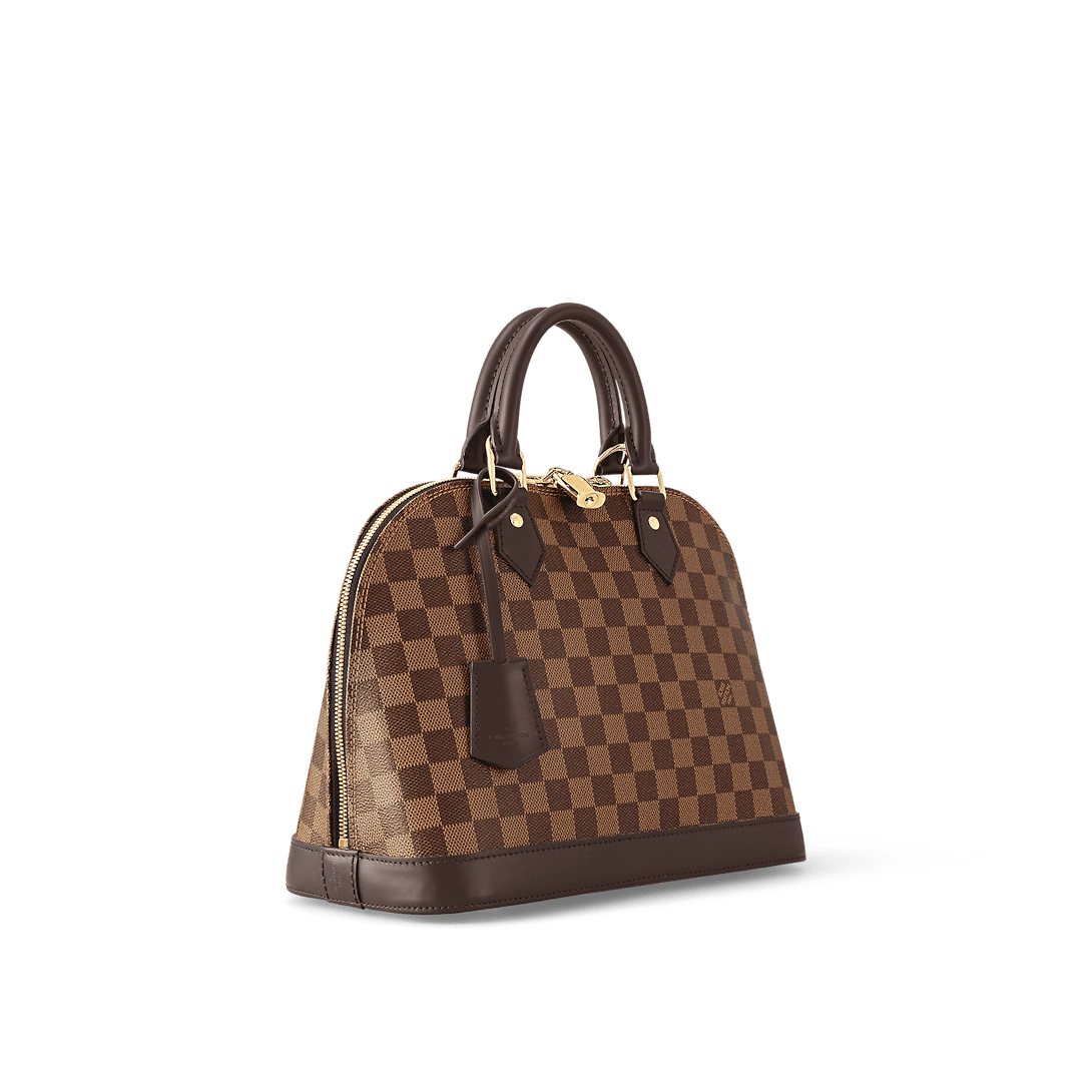 A timeless House icon, the Alma PM handbag is perfect for every day. Its structured lines recall the Art Deco original, designed in 1934 and named for the Alma Bridge in Paris. Crafted from signature Damier Ebene canvas, with hand-stitched Toron handles, natural cowhide trim and gleaming golden hardware, this elegant model can be carried by hand or on the elbow.