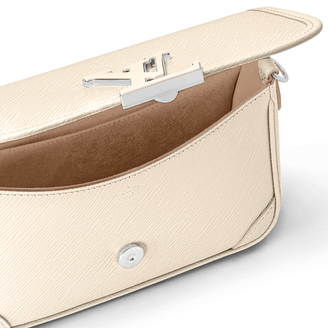 - Front flap with decorative LV resin ornament, magnetic closure