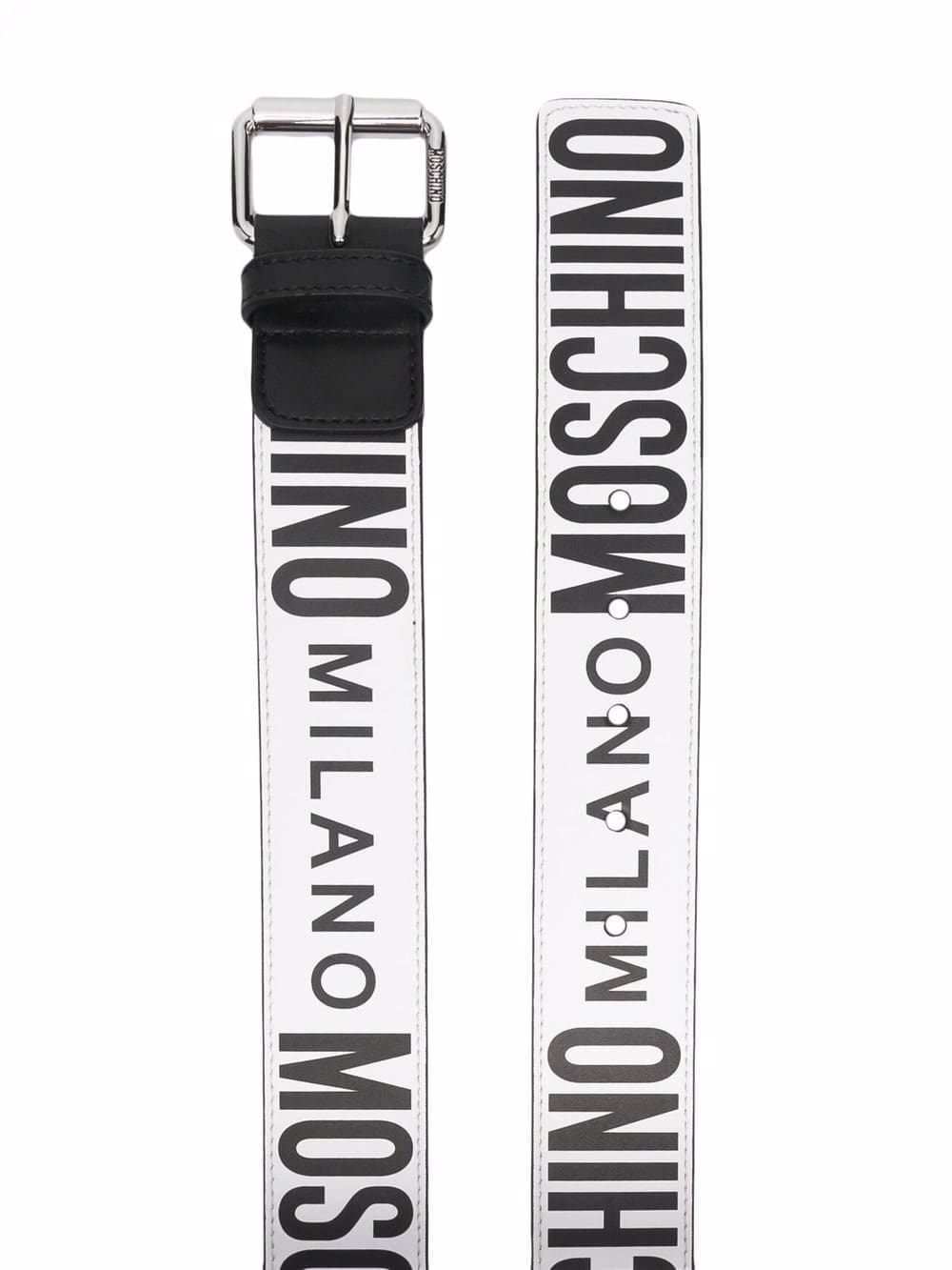 white/black calf leather adjustable fit all-over embossed logo print logo buckle fastening punched holes