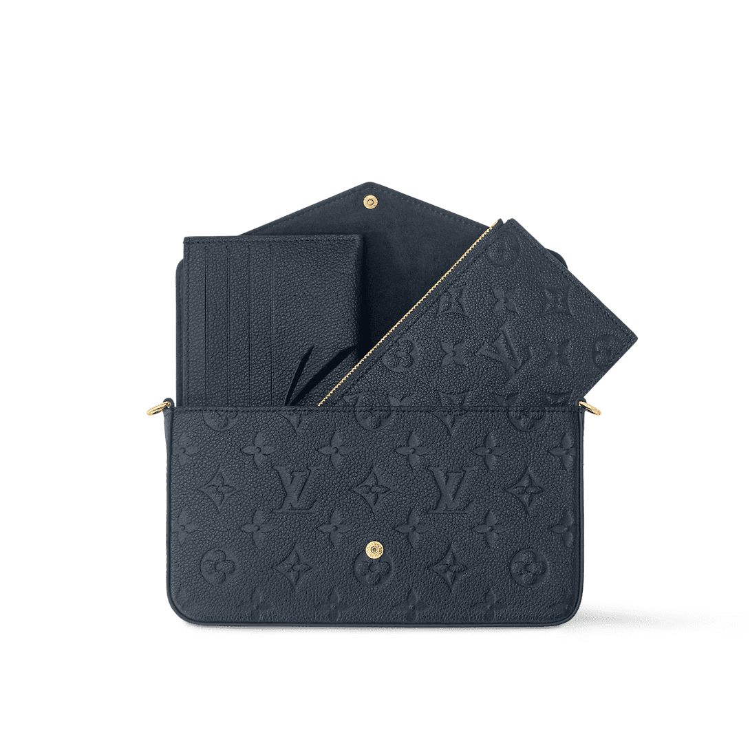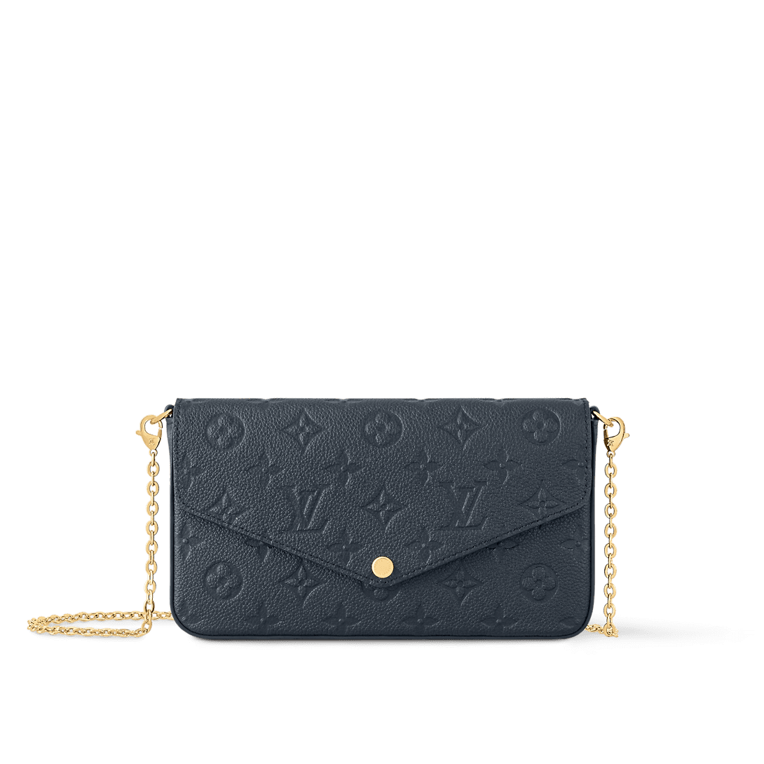 The Félicie Pochette is crafted from Monogram Empreinte leather, embossed with Louis Vuitton's signature Monogram pattern. Designed to adapt to modern lifestyles, this envelope-style pouch contains a spacious compartment with two removable pockets: one zipped, one with card slots. It can also be carried in different ways thanks to a removable chain.