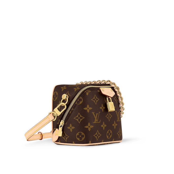 The Maison salutes its travel heritage with the Just In Case handbag. Made from Monogram canvas with natural cowhide-leather trim, this compact model keeps essentials ā smartphone, keys, makeup ā always close at hand. Detailed with a signature padlock and key bell, the bag is fitted with a leather-braided chain and a leather strap, both removable, for a variety of modern carry options.
