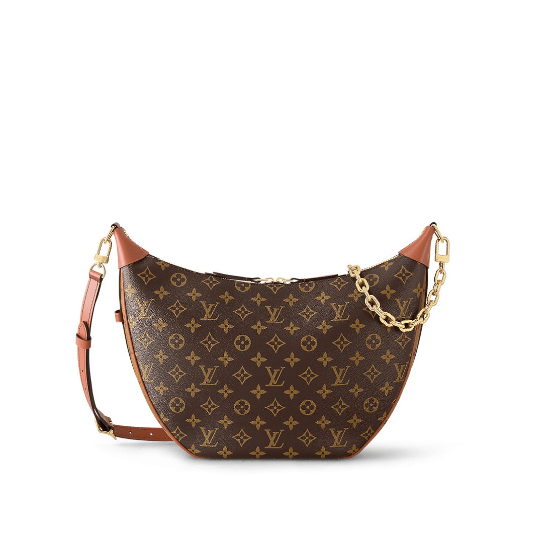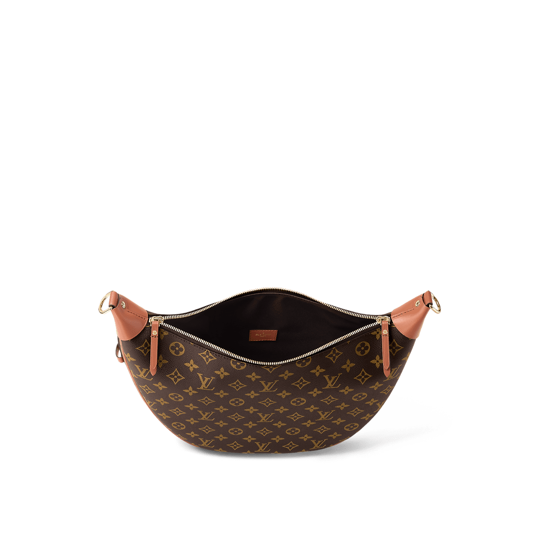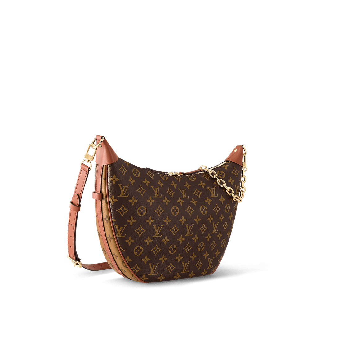 A supple and roomy bag, the Loop Hobo is made from a mix of Monogram and Monogram Reverse coated canvas. Its on-trend half-moon shape is emphasized by the leather corners. A removable chain and removable and adjustable leather strap enable multiple carrying options.