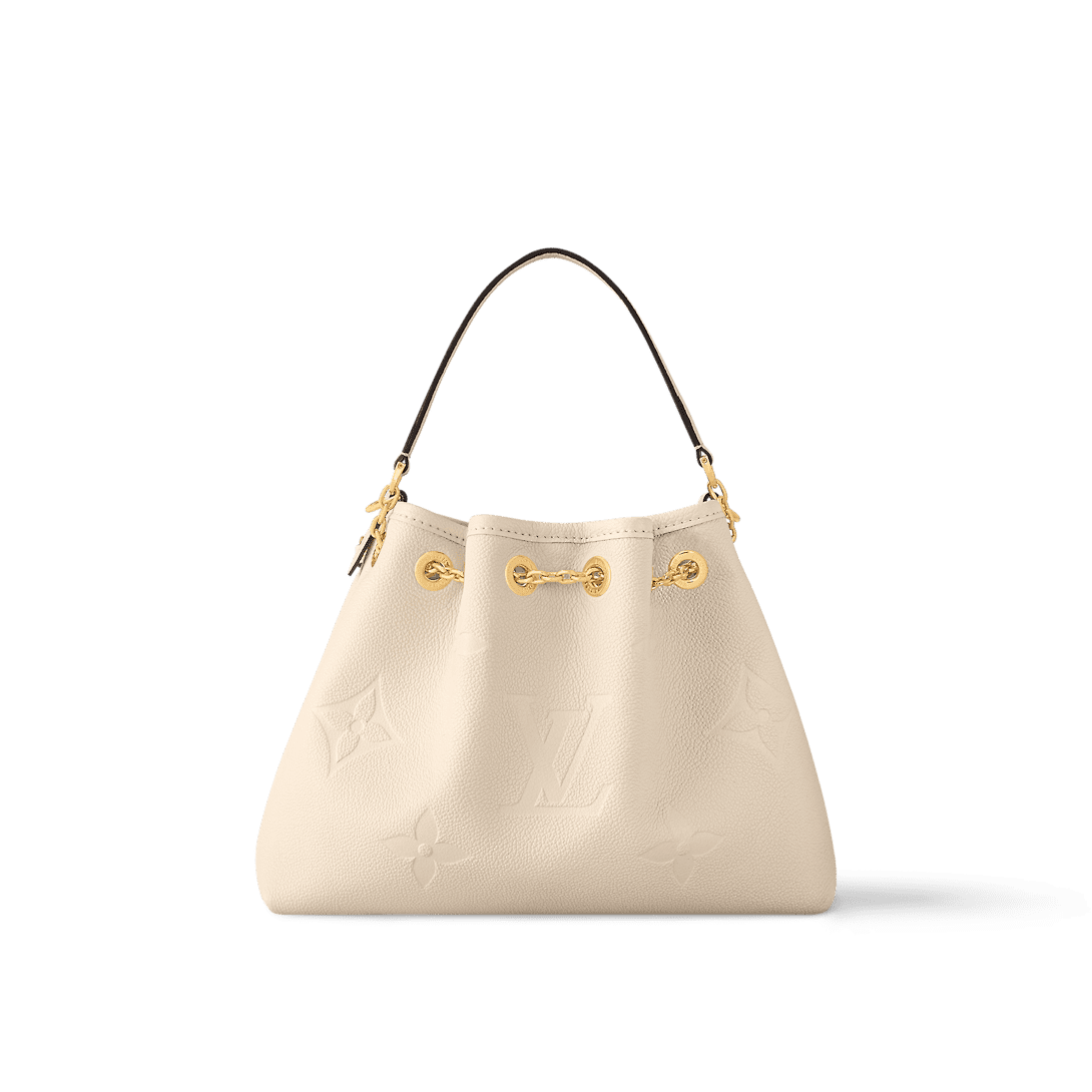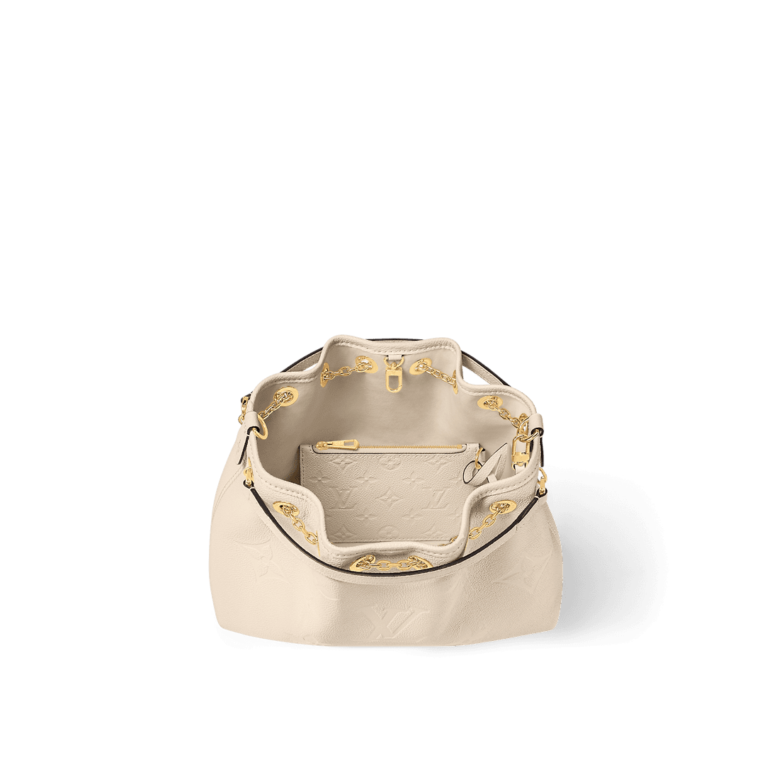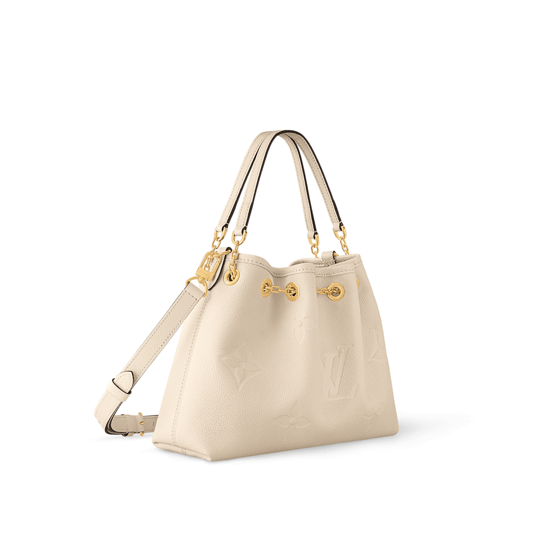 The LV Bundle bag is made from Monogram Empreinte leather with gold-color hardware, including on the chain drawstring. This “day to evening” bag’s sleek lines will match almost any summer outfit. It has two handles for fashionable hand carry as well as an adjustable and removable strap for comfortable cross-body and shoulder wear.