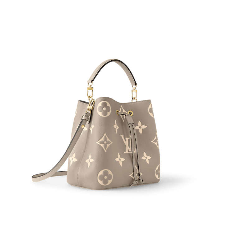This bicolor version of the Nano NoƩ is crafted from supple Monogram Empreinte leather, embossed with the Monogram pattern. This miniature replica of the iconic NoƩ bag is a stylish way to carry everyday essentials. In addition to its practical drawstring closure, it features a removable handle and a removable, adjustable shoulder strap for different carry options.