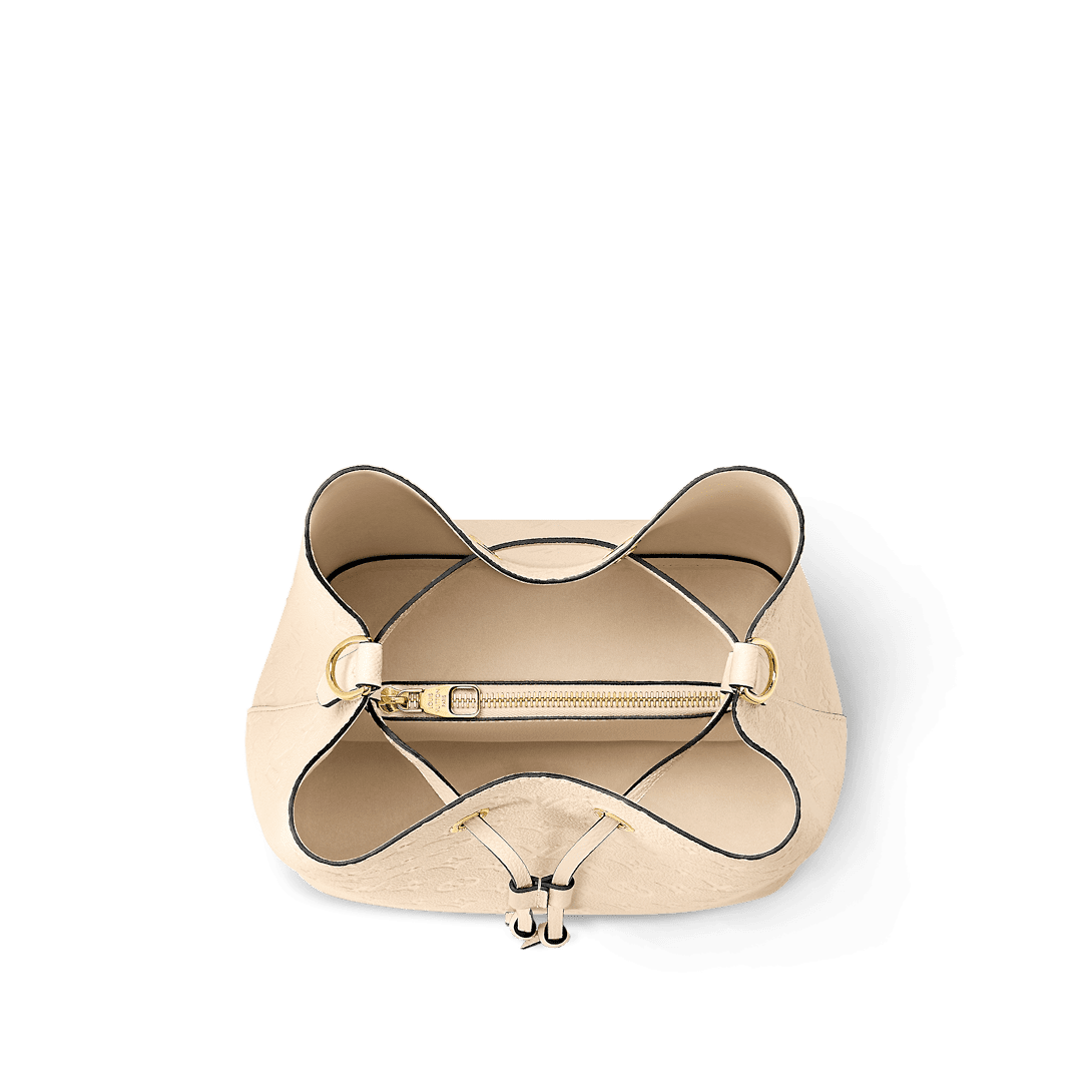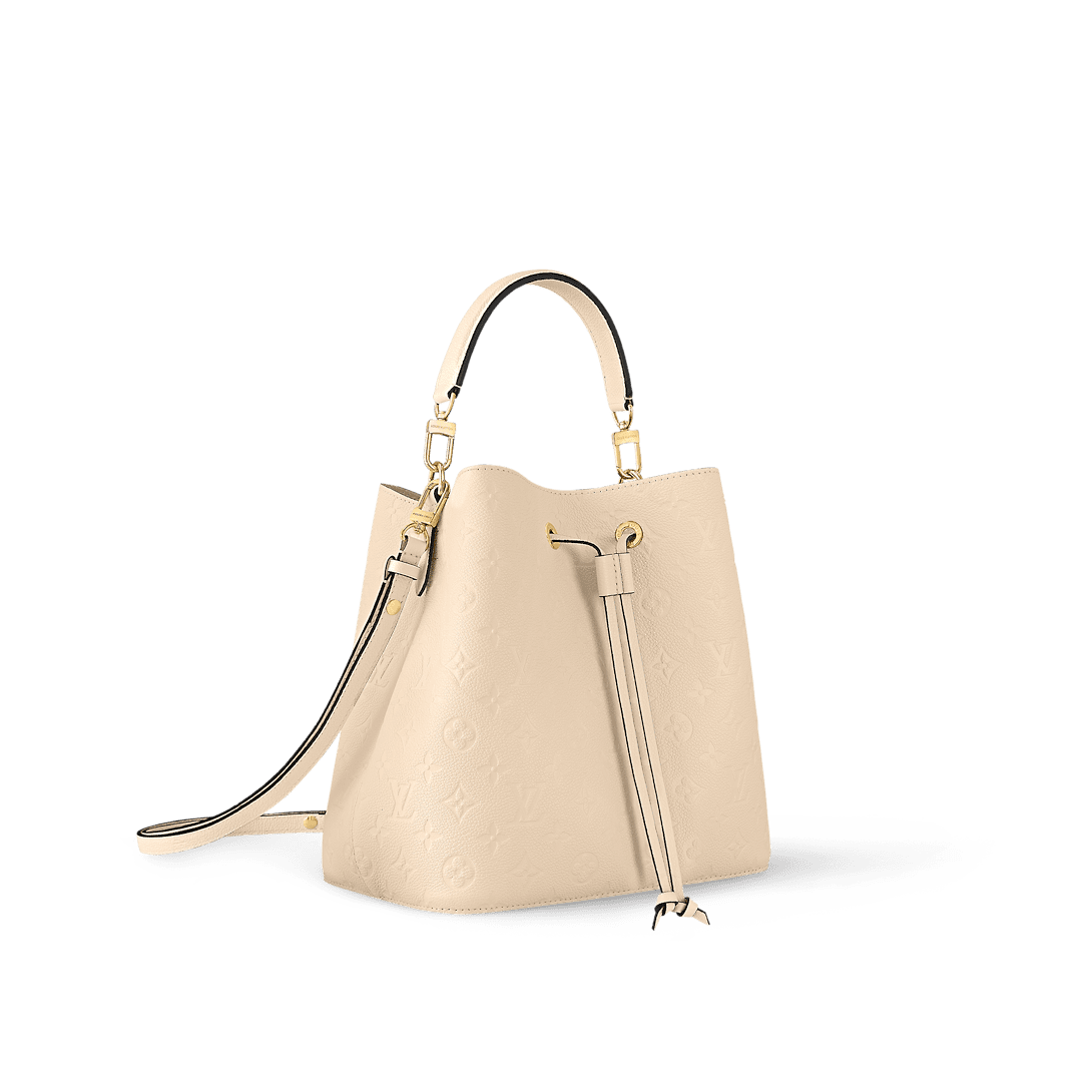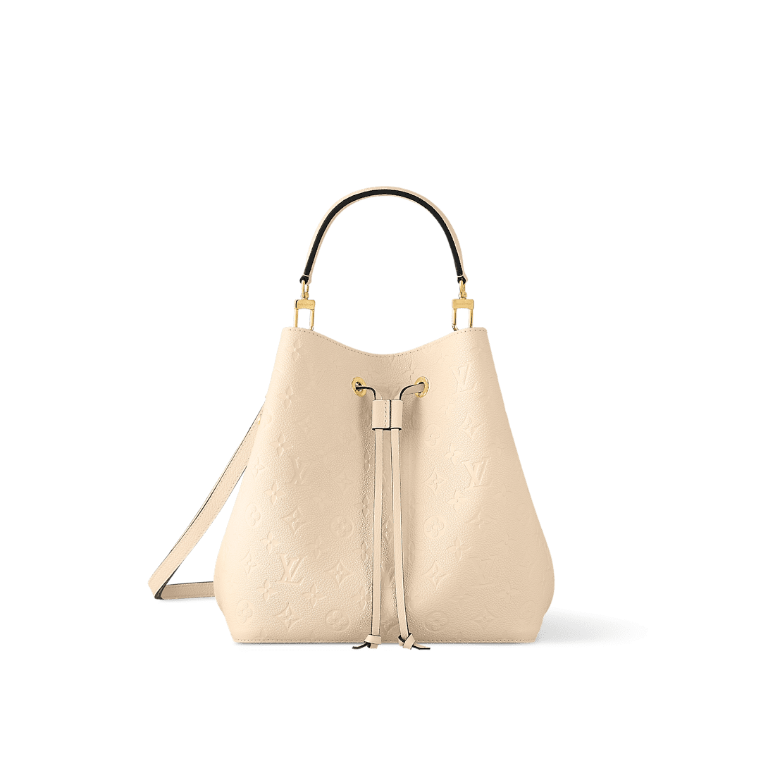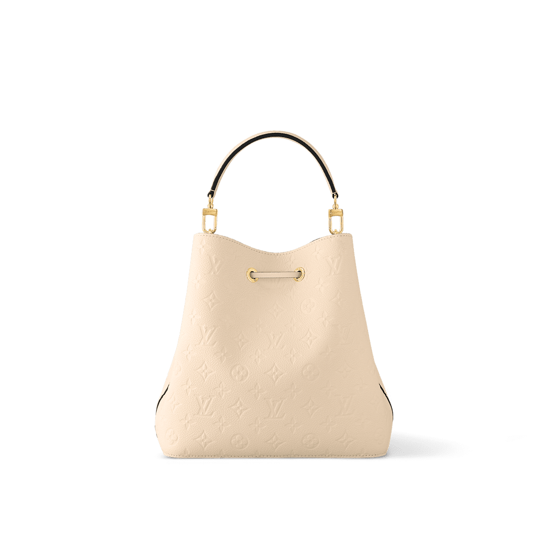 The House’s emblematic bucket bag, the NéoNoé MM, is fashioned from luminous cream-color Monogram Empreinte leather, making it stylish no matter the season. The cream-color microfiber lining and Monogram Flowers and LVs discretely embossed into the leather bring understated charm. A top handle and leather shoulder strap offer a variety of carry options.
