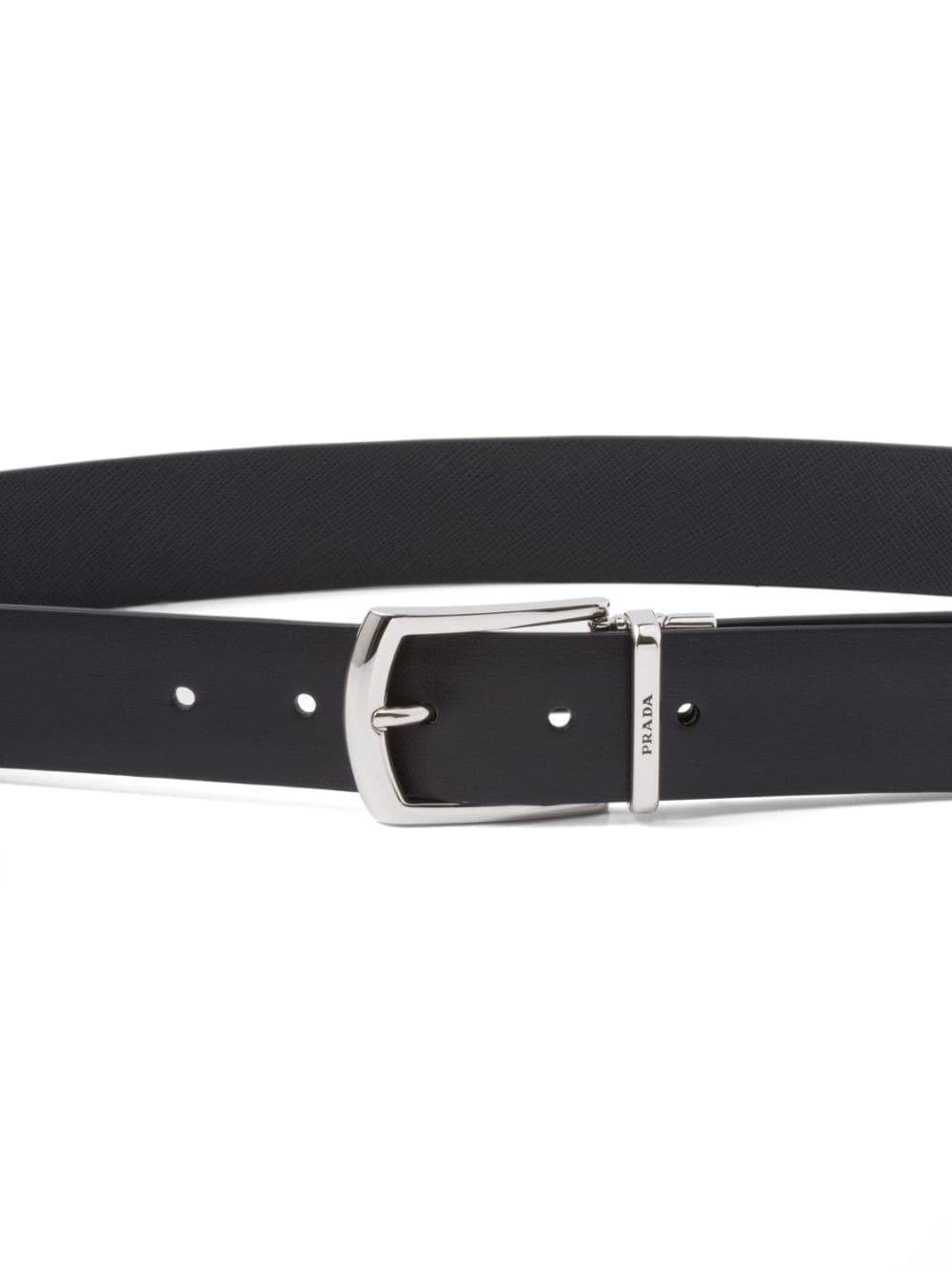 Recognisable thanks to the cross-hatch pattern that is pressed into the leather's coating, Prada's Saffiano leather lends a quintessential Italian flair to this reversible belt.