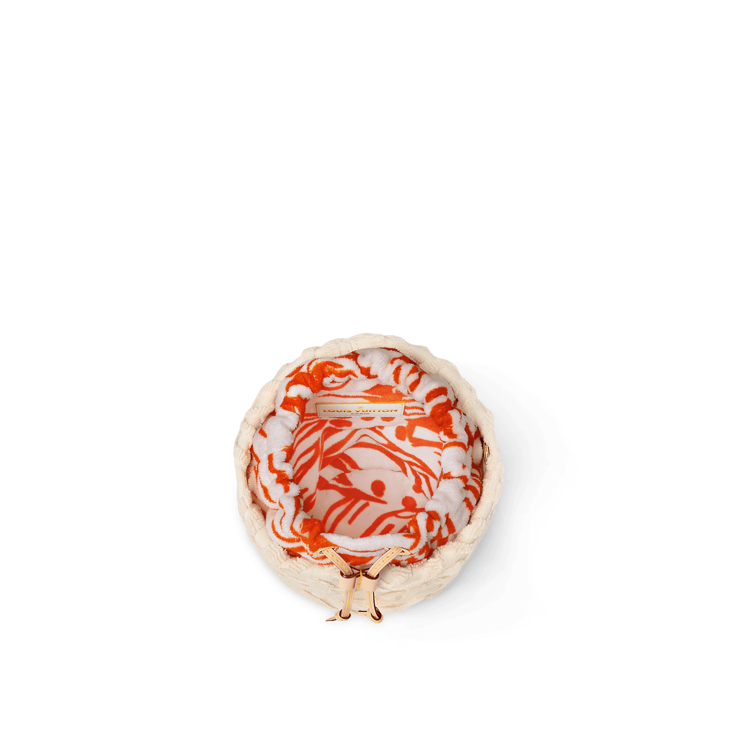 The familiar bucket bag shape takes on an ultra-soft feel in this LVacation Bucket made from organic terrycloth cotton. A jacquard weave creates a lush, dimensional version of the Monogram pattern, with the LV Circle front and center. All the leather details, including the top handle can be removed, and the bag machine washed. The bag is signed with a leather “Louis Vuitton Paris” charm.