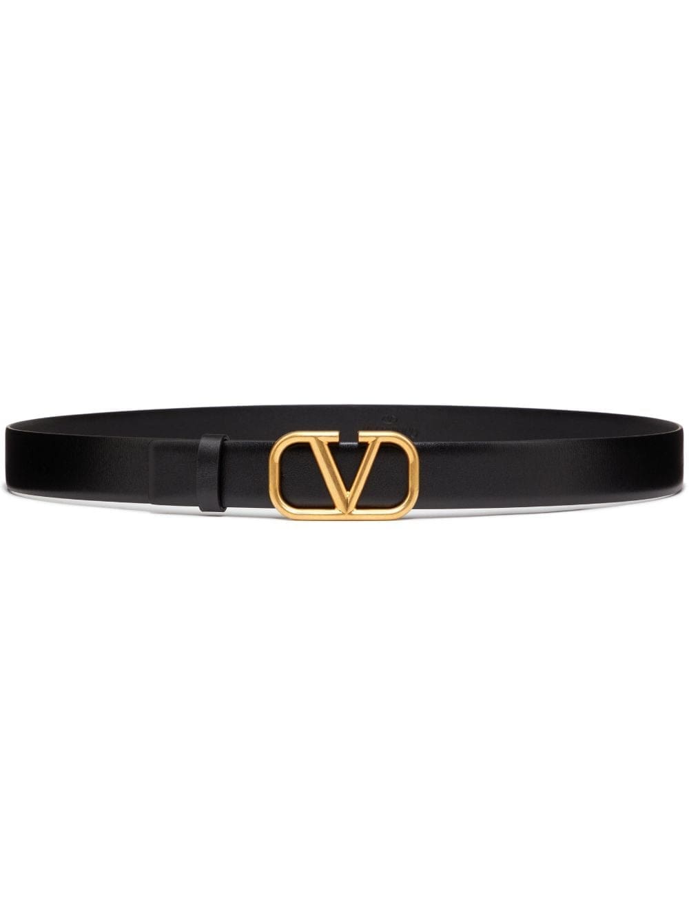 Valentino Garavani's VLogo Signature is constantly refreshed and reinvented for each collection. This black leather belt is punctuated by a gold-tone buckle iteration of the trademark motif.
