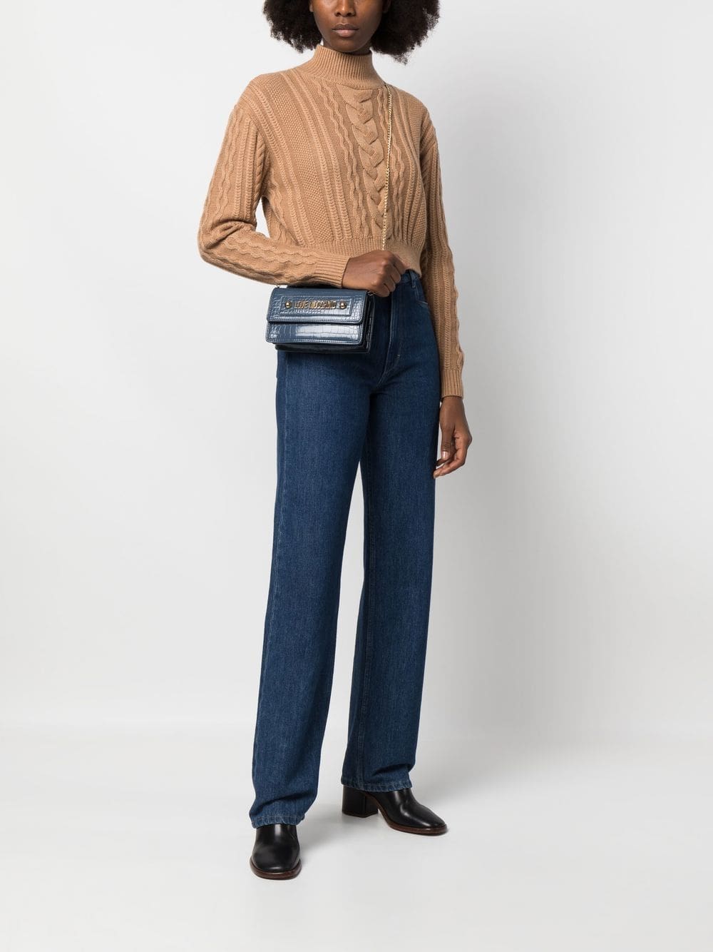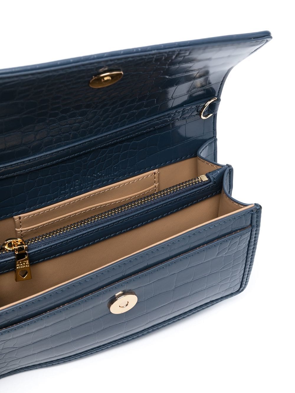 cornflower blue embossed crocodile effect gold-tone hardware gold-tone logo lettering foldover top with magnetic fastening partitioned compartment internal zip-fastening pocket internal card slots
