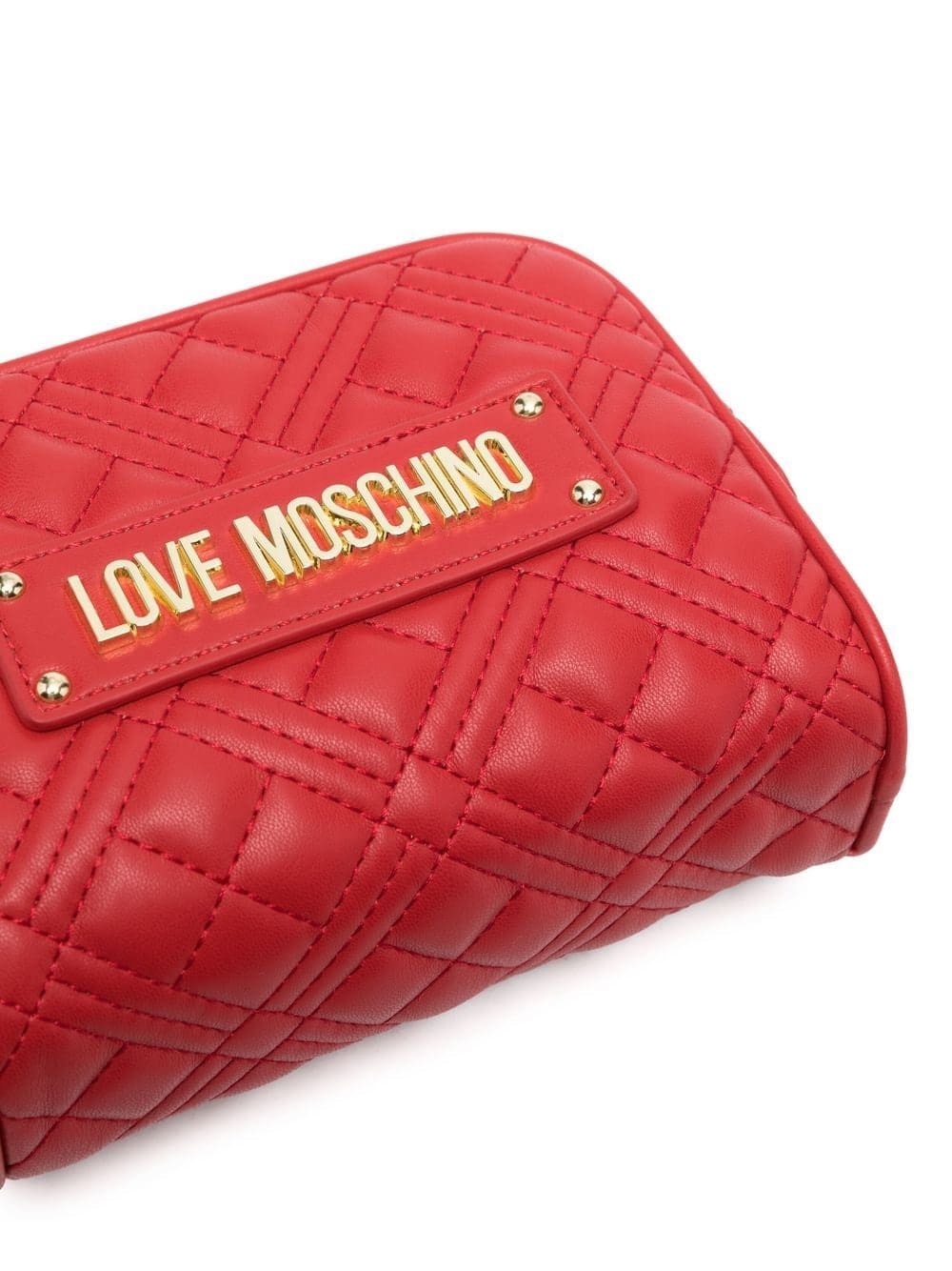 bright red diamond quilting gold-tone logo lettering top zip fastening leather and chain-link shoulder strap main compartment