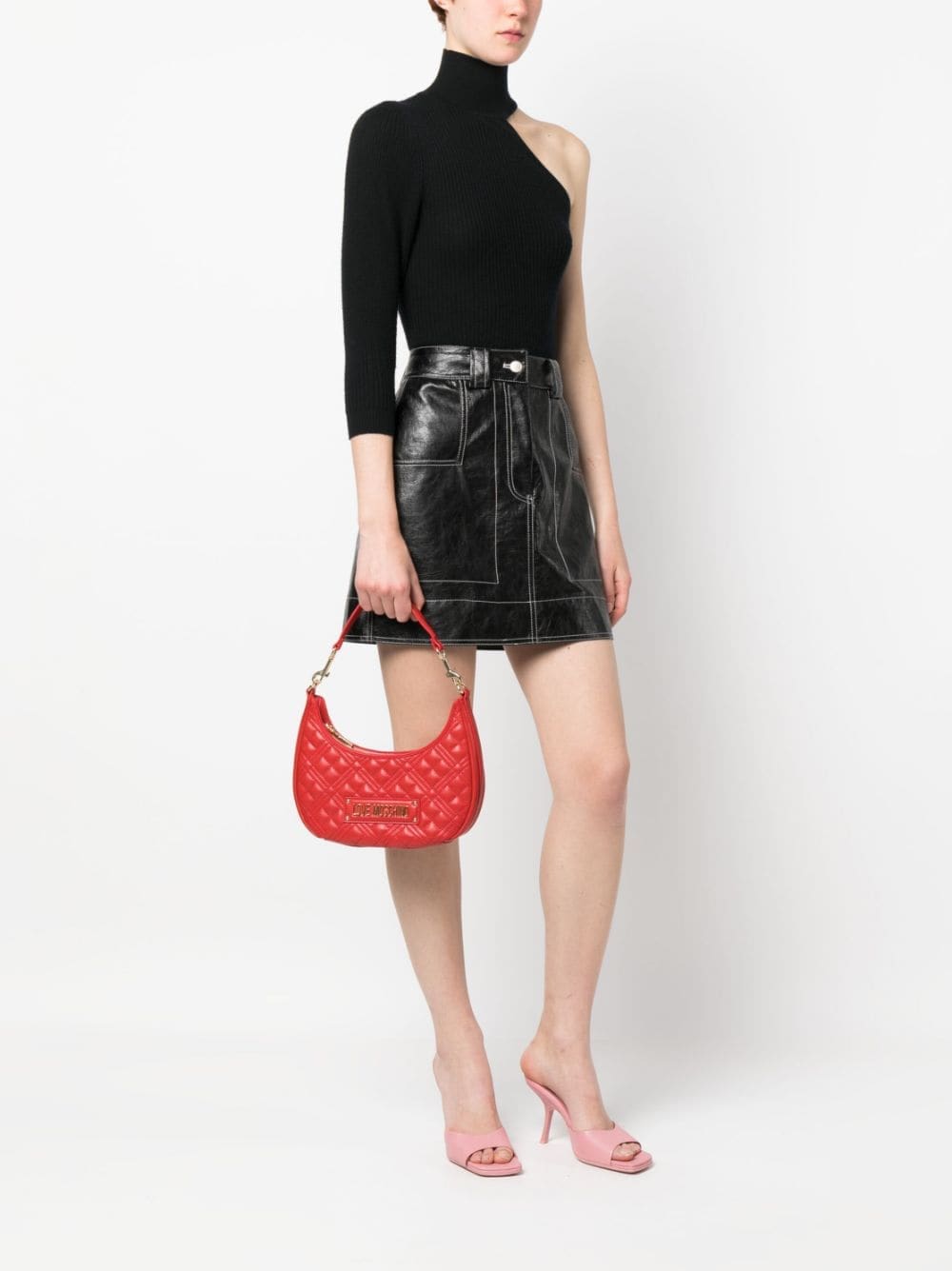 poppy red faux leather quilted finish gold-tone logo lettering top zip fastening two detachable shoulder straps internal slip pocket main compartment