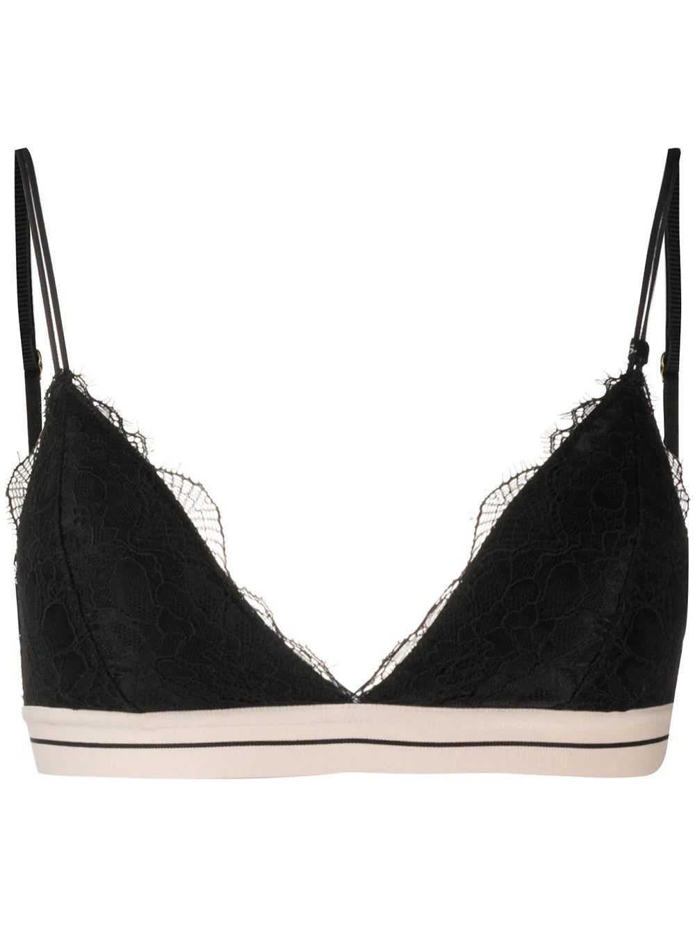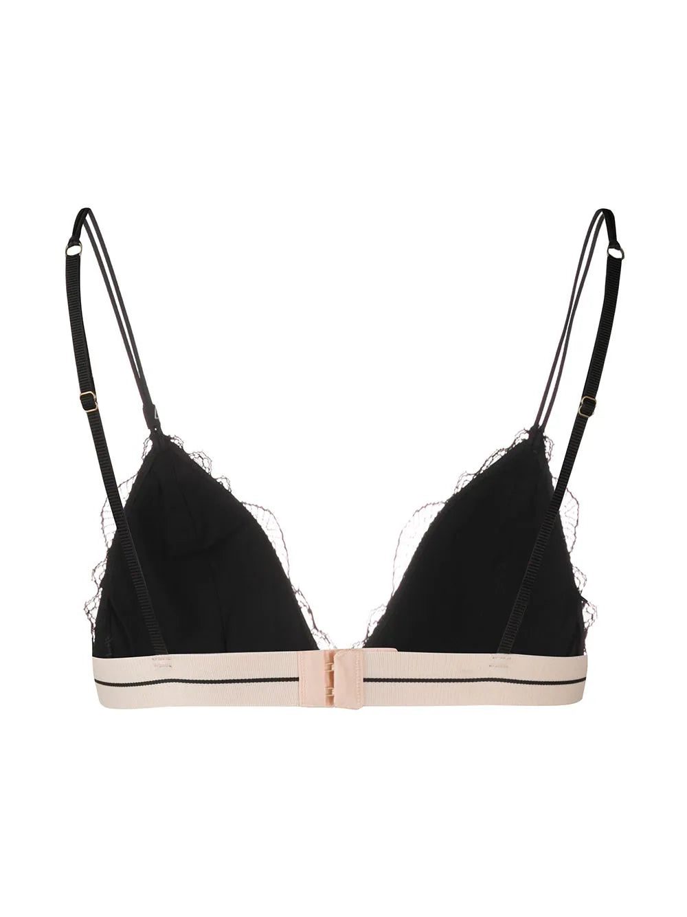 Black scalloped lace bra from Love Stories featuring shoulder straps, a v-neck, an elasticated hem and scalloped details. Underwear and lingerie must be tried on over your own garments.