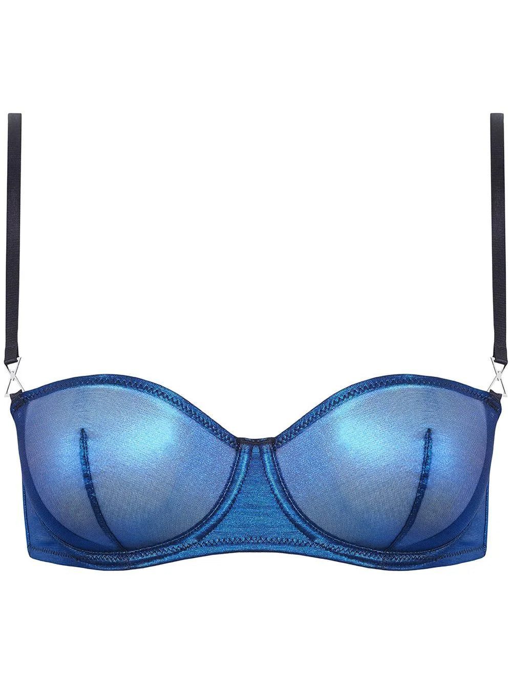 blue polyamide blend adjustable shoulder straps tulle netting rear hook and eye fastening silver-tone hardware Be mindful to try on underwear over your own garments.