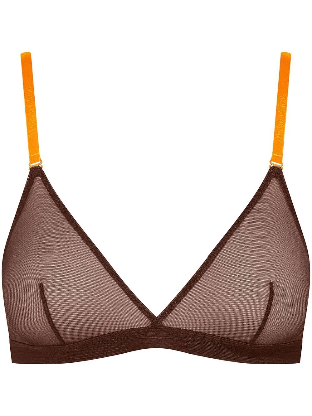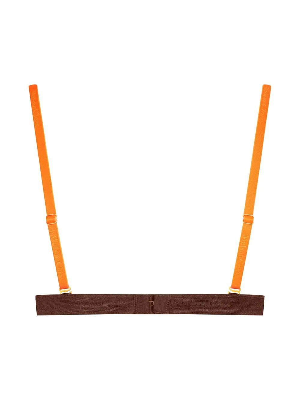 brown/neon orange mesh panelling sheer adjustable shoulder straps logo-debossed strap rear hook and eye fastening