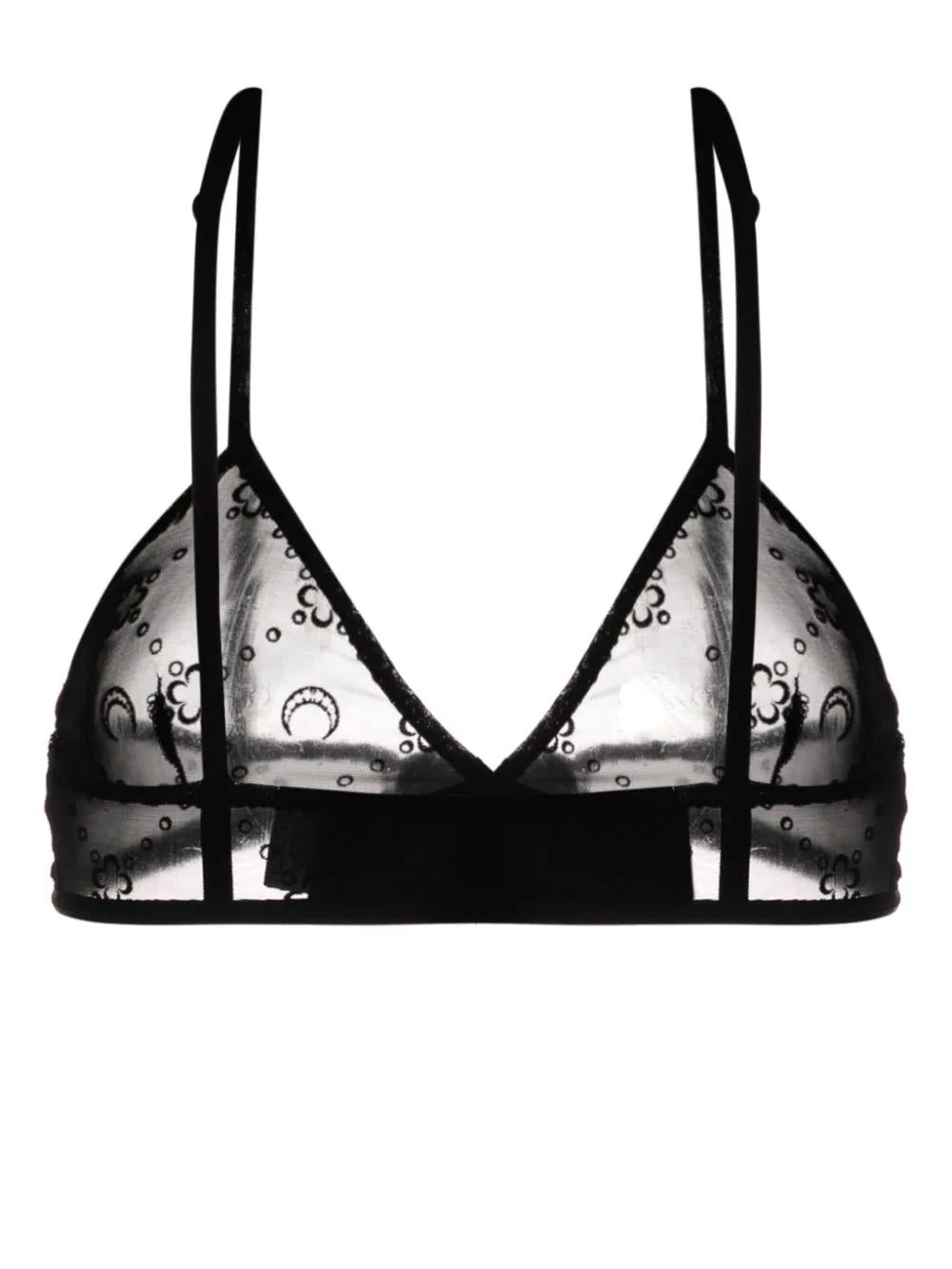Marienne Serre's semi-sheer bra is crafted from glittery mesh and flocked with the signature Crescent Moon symbol.
