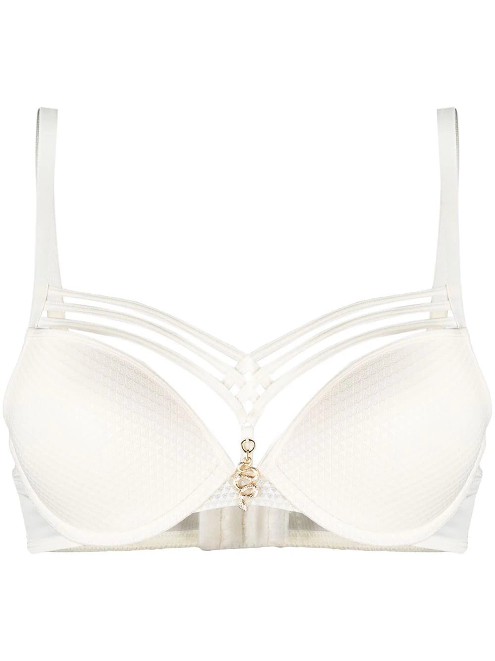 ivory charm detail push-up style crossover strap detail adjustable shoulder straps It is essential that you try on underwear and lingerie over your own garments. We trust you to follow the rules