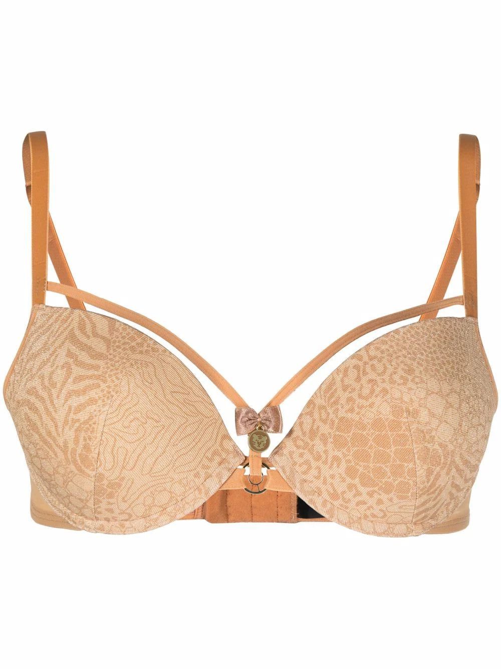 beige leopard print metallic effect plunging V-neck Just a reminder that this piece must be tried on over your own garments. POSITIVELY CONSCIOUS: We've partnered with Good On You — an ethical agency that rates how sustainably brands perform across various people, planet and animal welfare criteria. This product comes from a Conscious brand that performs well in relation to their impact on animals.