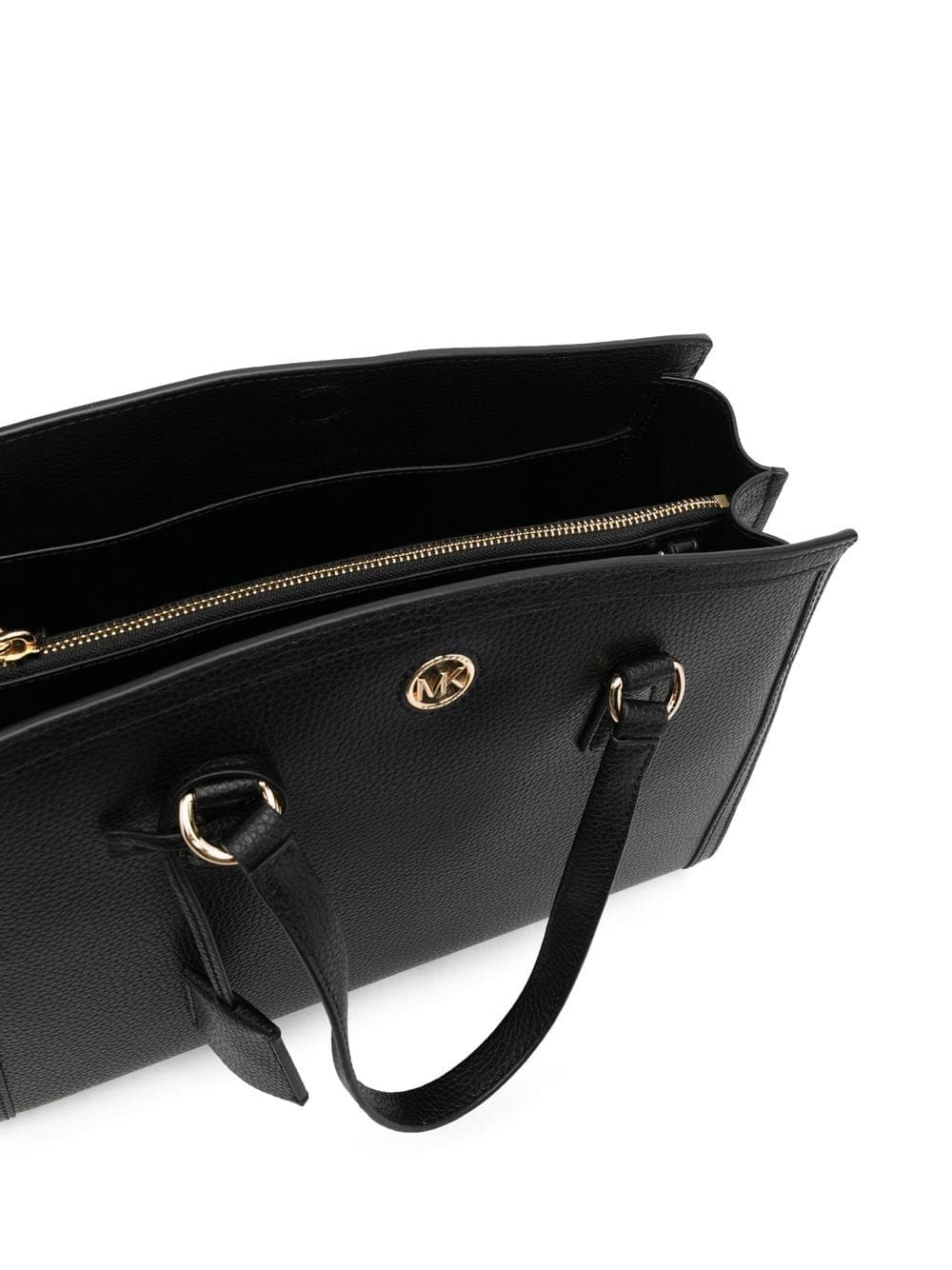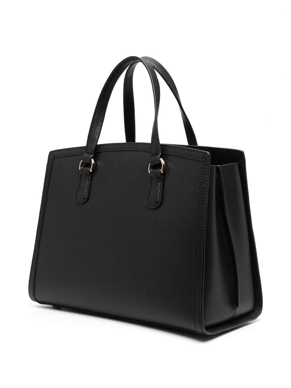black calf leather gold-tone logo plaque luggage tag detachable shoulder strap two rounded top handles concealed magnetic fastening partitioned compartment internal zip-fastening pocket
