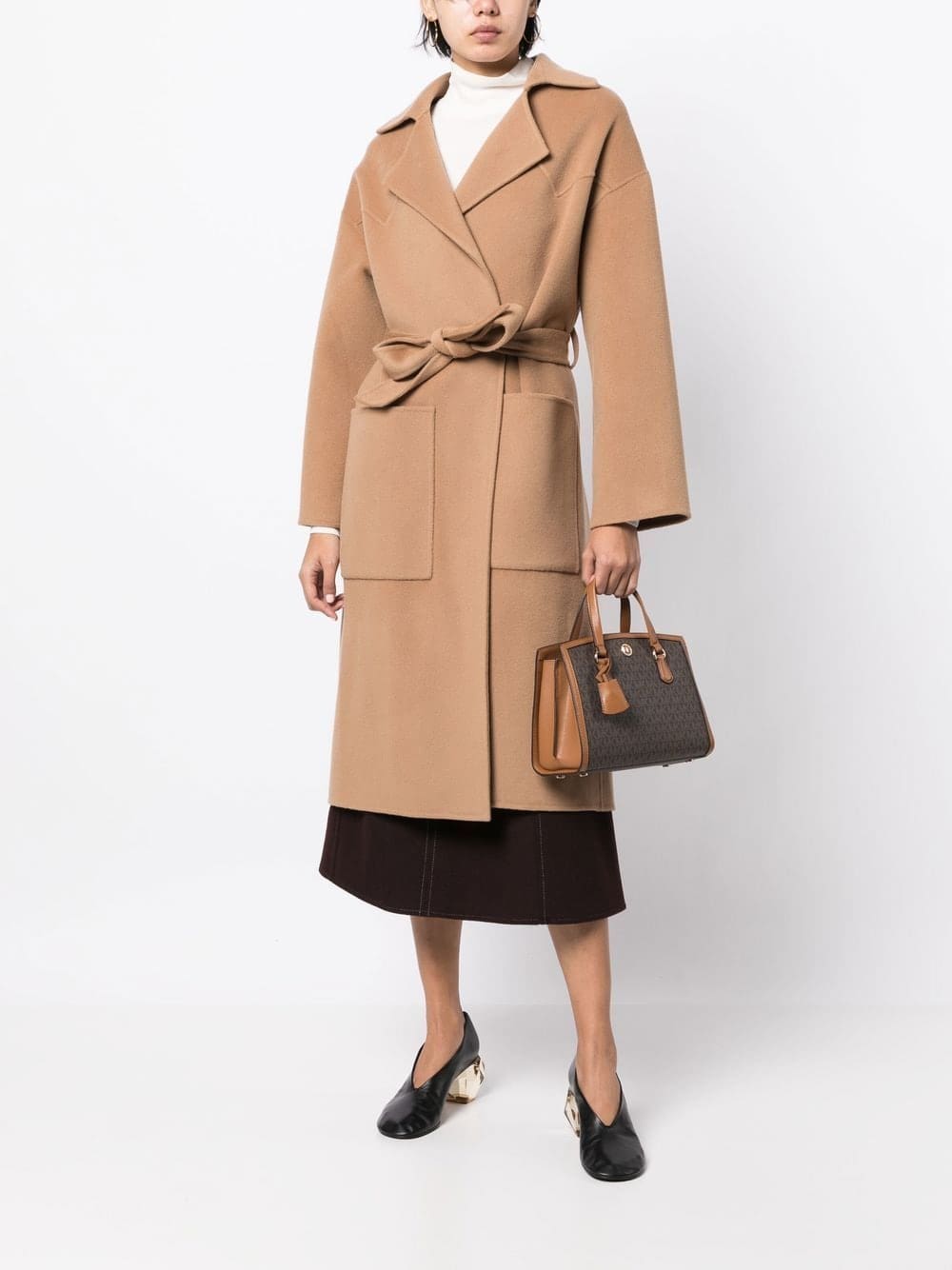 brown leather monogram pattern gold-tone hardware two flat top handles main compartment adjustable detachable shoulder strap