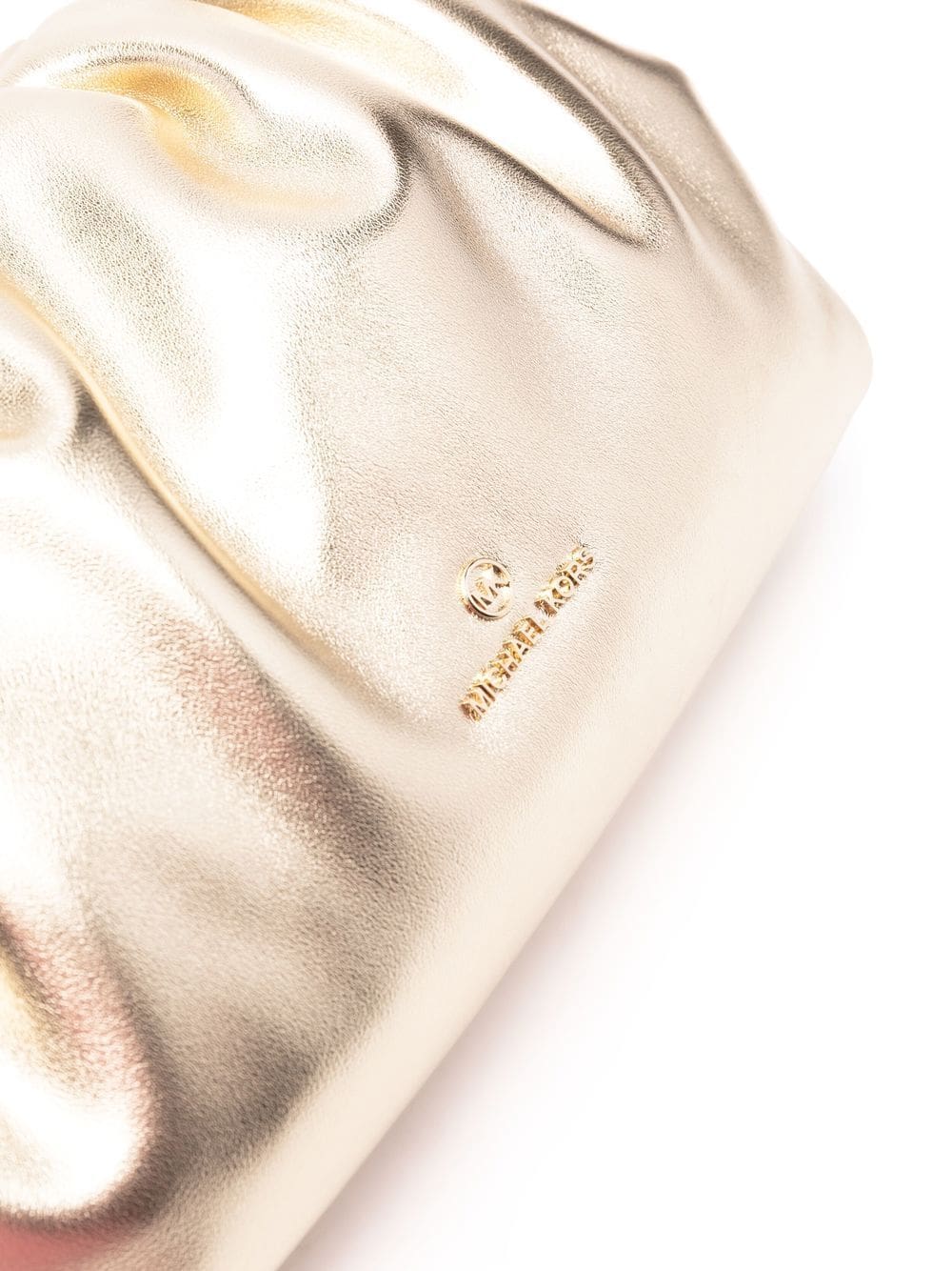Crafted with a slouchy silhouette to resemble a cloud, this Michael Michael Kors bag offers a roomy clutch option. Appearing in metallic gold leather, the slouchy accessory features a main compartment and two interior pockets.