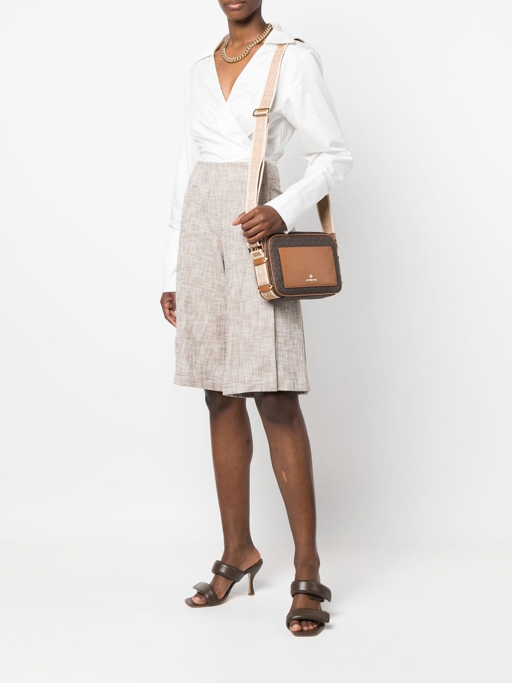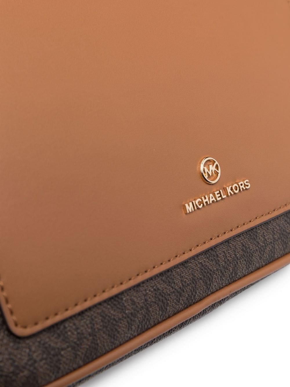 acorn brown leather monogram pattern gold-tone logo lettering front patch pocket logo shoulder strap top zip fastening
