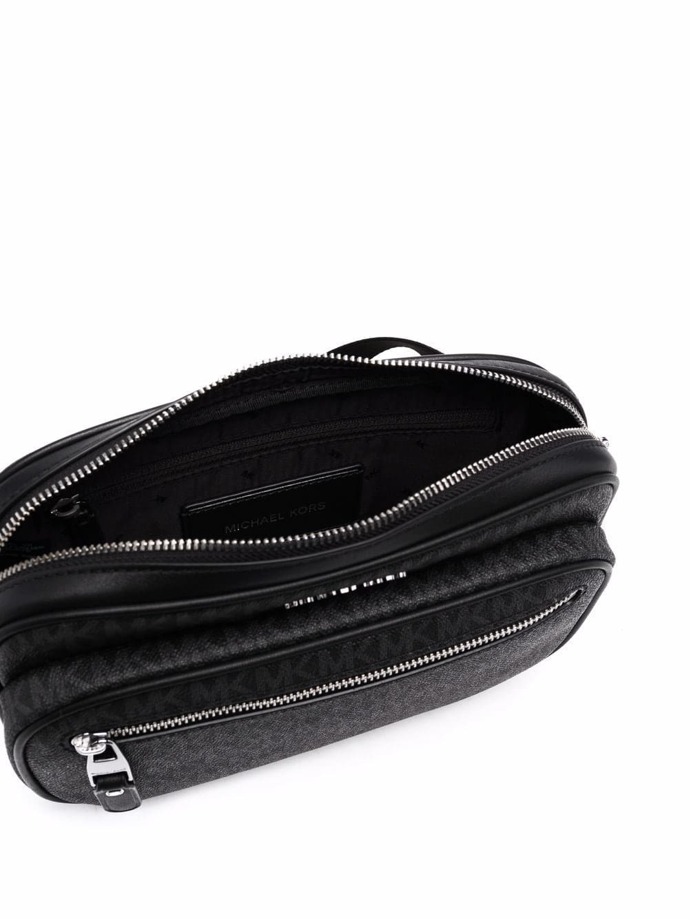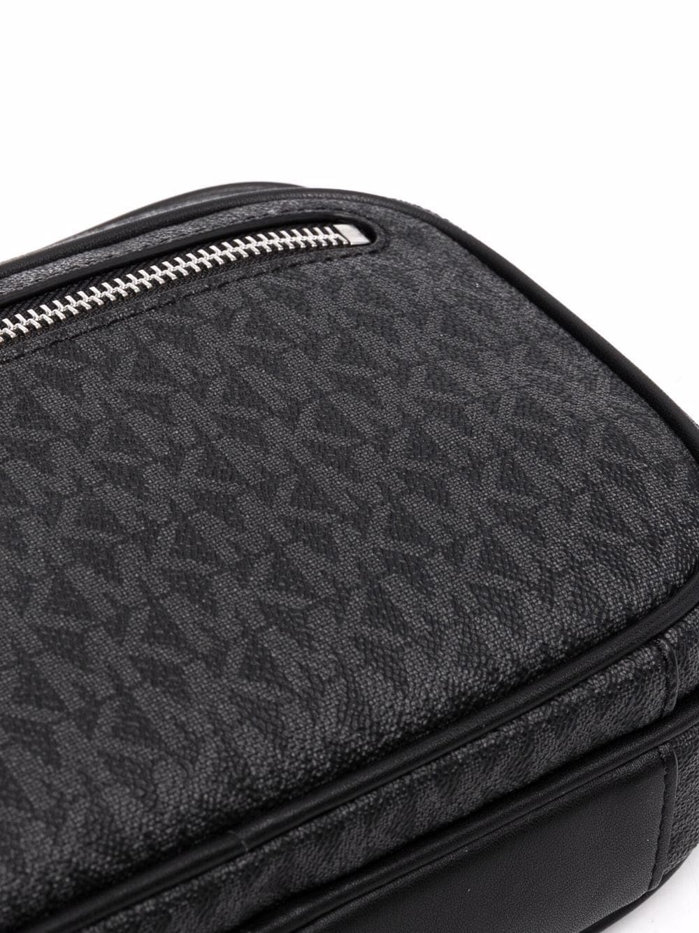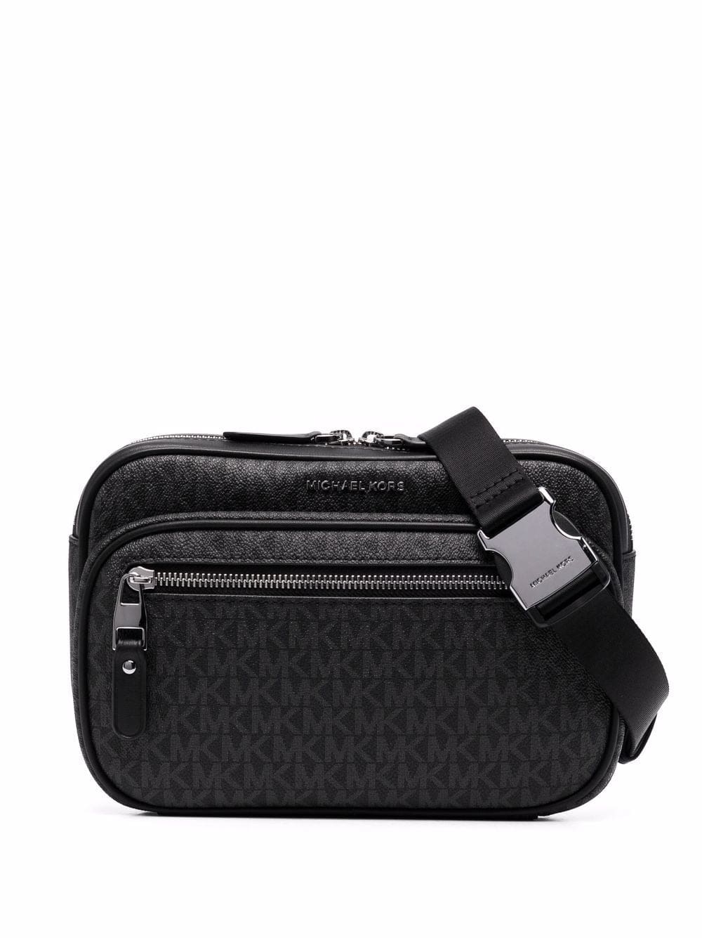 black monogram print top zip fastening buckle fastening at the strap single shoulder strap main compartment front zip-fastening pocket