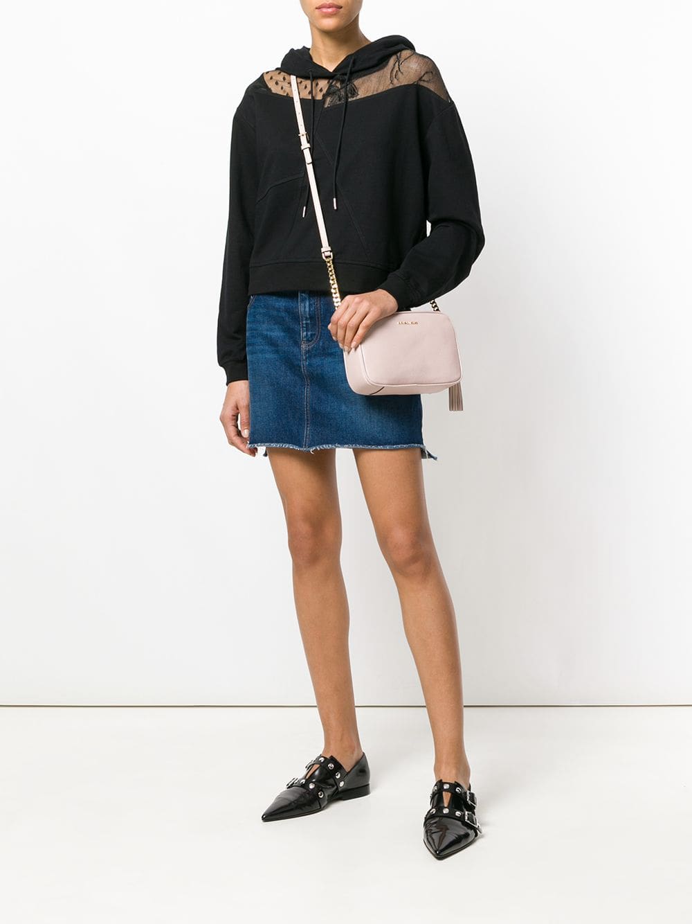 From lifelong classics, to seasonal sensations - harness the power of accessories with the latest Michael Michael Kors collection. Equal parts cool and classy, every piece is a sure-fire winner. Crafted from beautiful soft pink calfskin pebbled leather, this Ginny cross body bag features a chain and leather strap, a top zip fastening, a hanging tassel, gold-tone hardware and an internal zipped pocket.