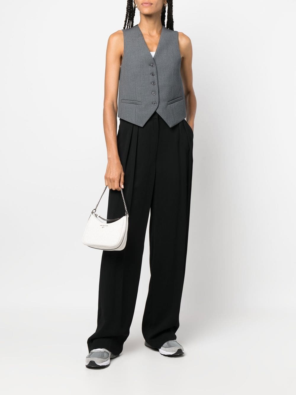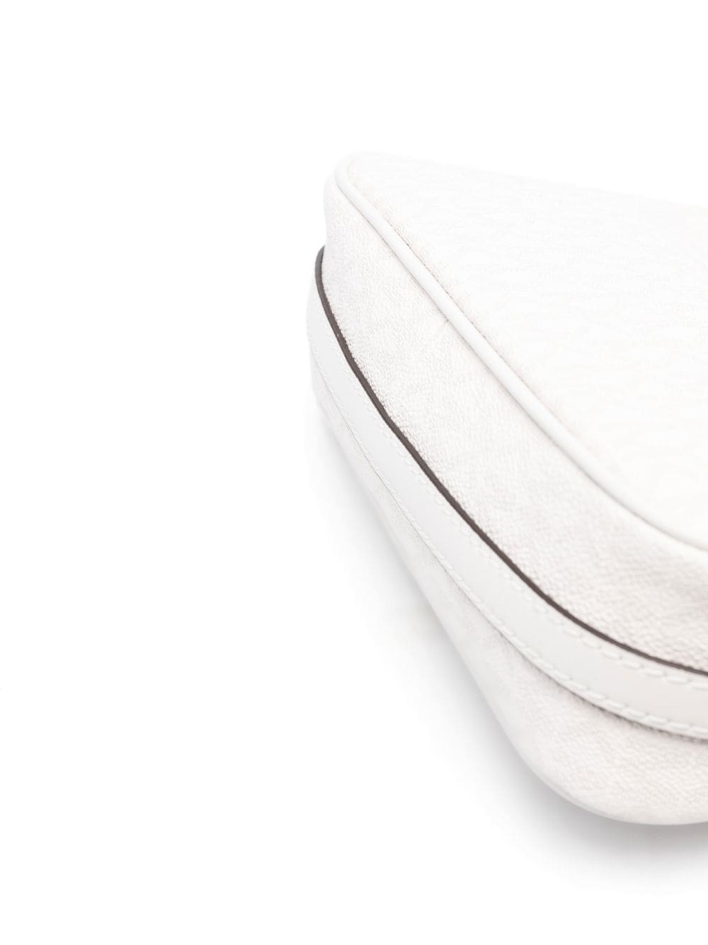 optical white faux leather pebbled texture monogram pattern silver-tone logo plaque single chain-link top handle silver-tone hardware top zip fastening main compartment logo-print lining internal logo patch internal card slots