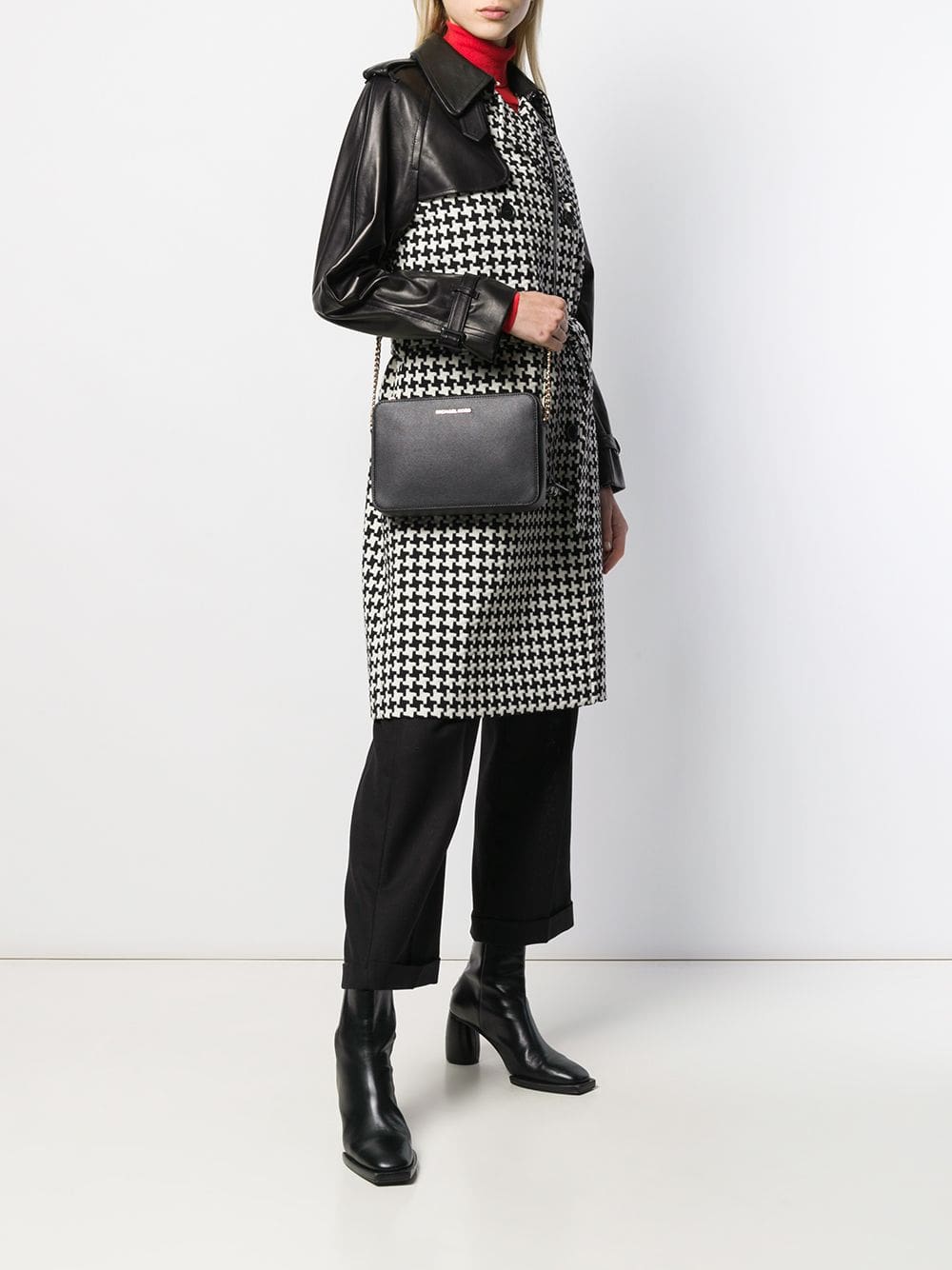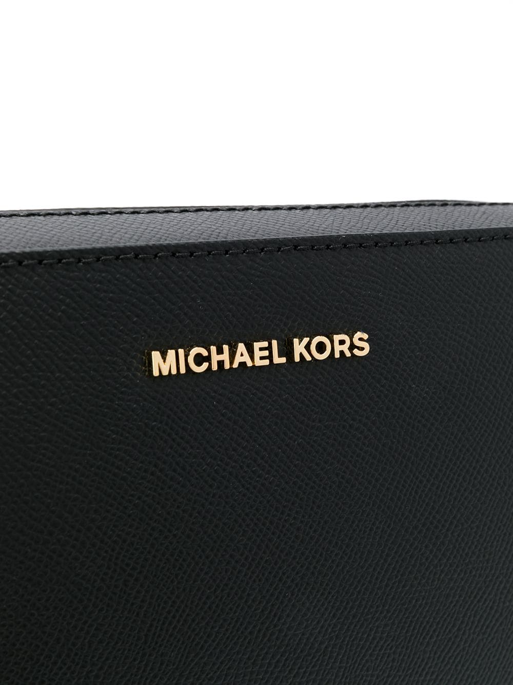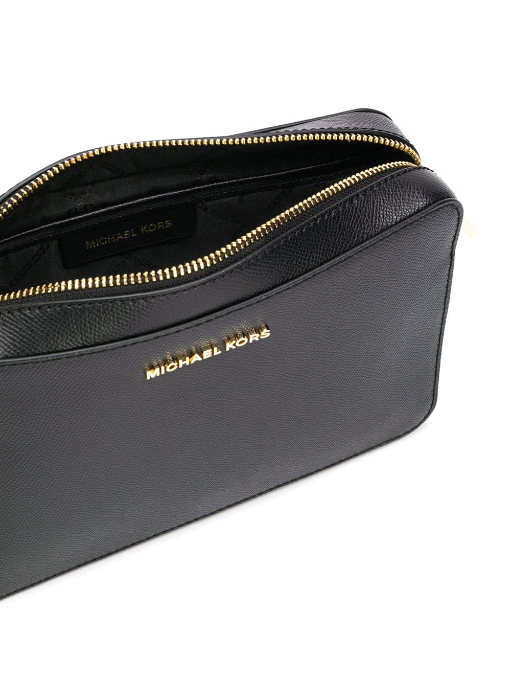 Black leather Jet Set shoulder bag from Michael Michael Kors featuring a chain and leather strap, a top zip closure, an internal slip pocket and a gold-tone logo plaque.