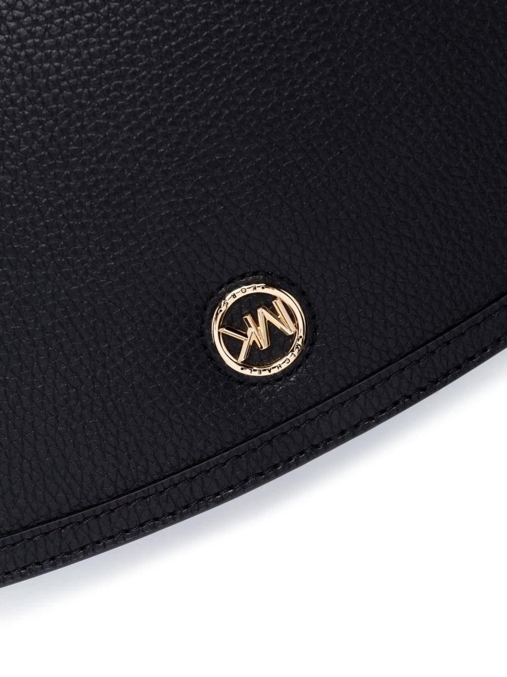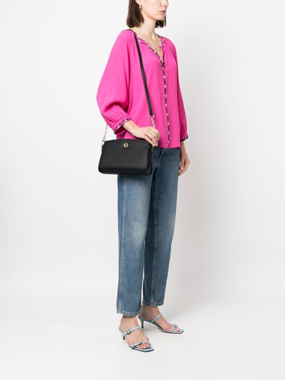 black calf leather gold-tone logo plaque top zip fastening main compartment leather and chain-link shoulder strap