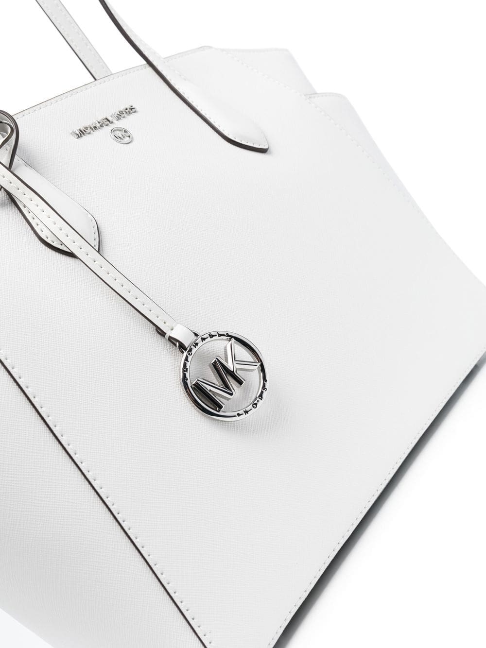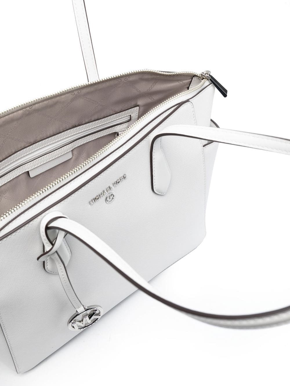 white calf leather silver-tone logo plaque logo charm top zip fastening single shoulder strap two top handles internal zip-fastening pocket suede lining