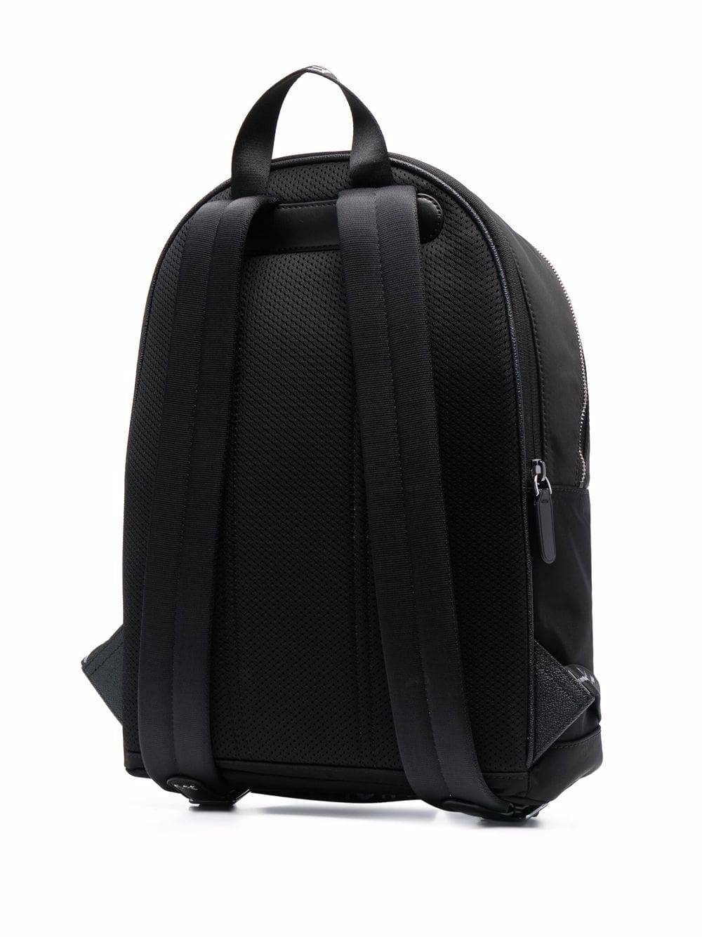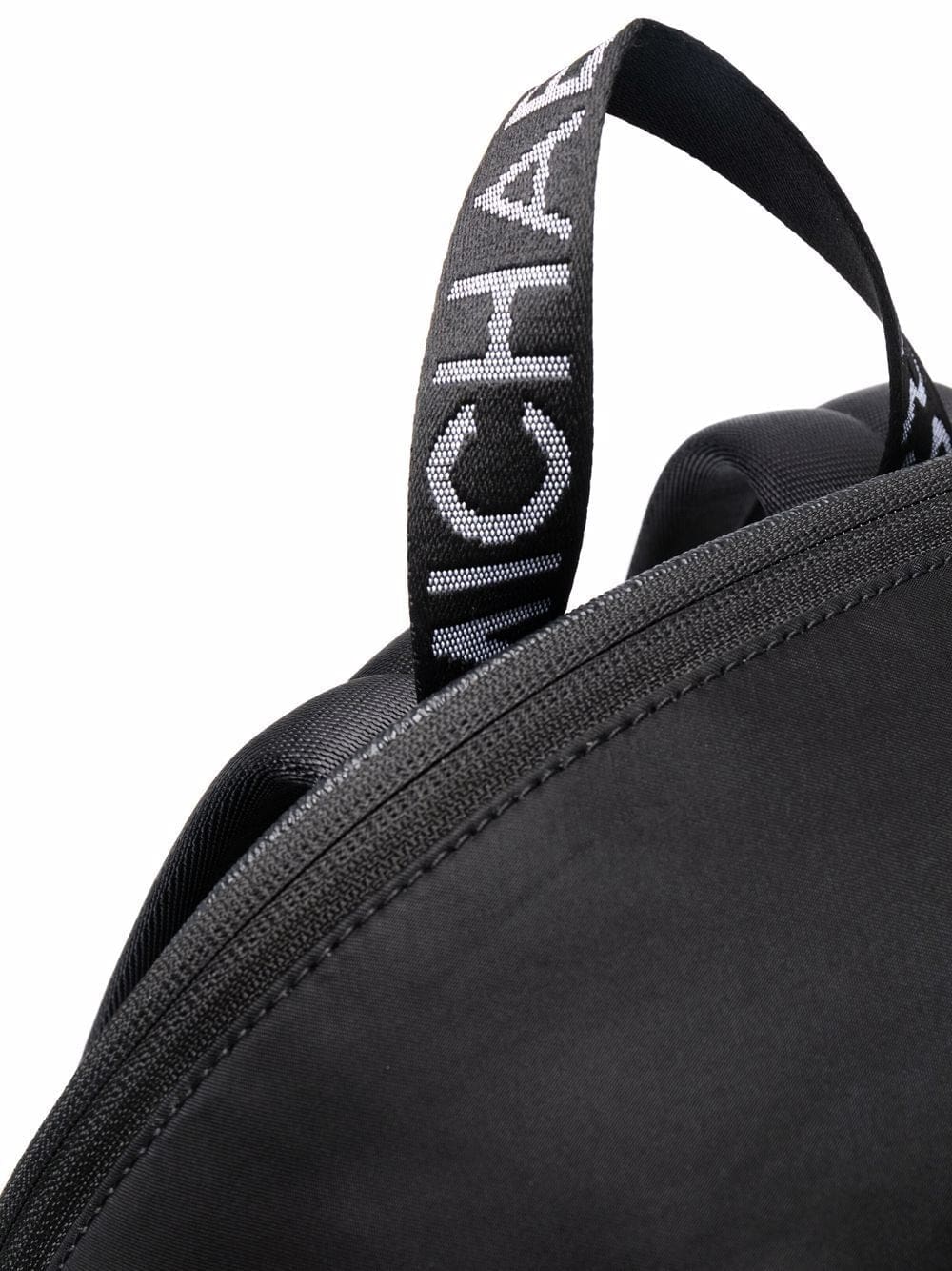 Michael Kors' modern approach to design is showcased through contemporary detailing on this blackpack. Featuring logo-tape detailing at the handle in a monochromatic colourway, the accessory is punctuated with a logo plaque at the front, which continues to tie in with current branding trends.