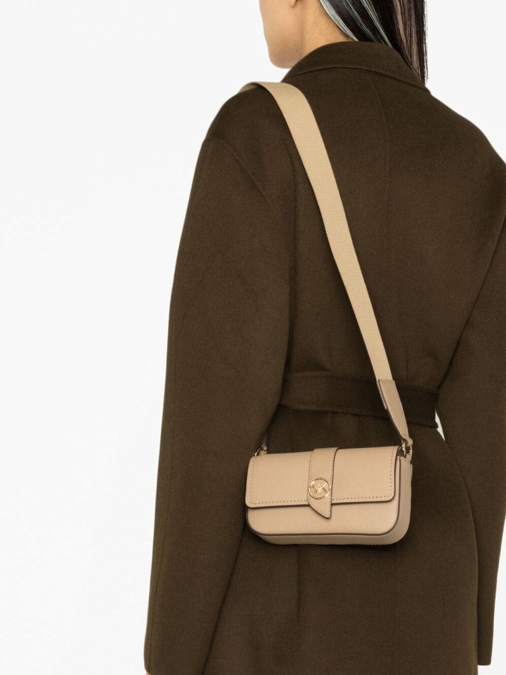 Made from smooth Saffiano leather, MICHAEL MICHAEL KORS's Greenwich bag is defined by its small main compartment and polished gold-tone hardware. Emblazoned with a logo plaque at the centre, it benefits from an adjustable strap that allows it to be worn in multiple ways,