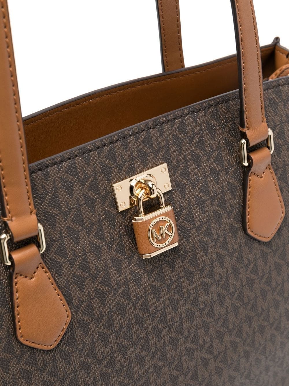 brown calf leather pebbled texture monogram pattern gold-tone logo plaque gold-tone hardware top zip fastening two long top handles internal zip-fastening pocket main compartment