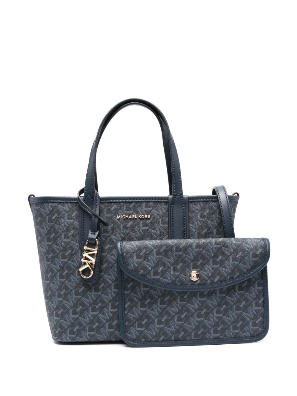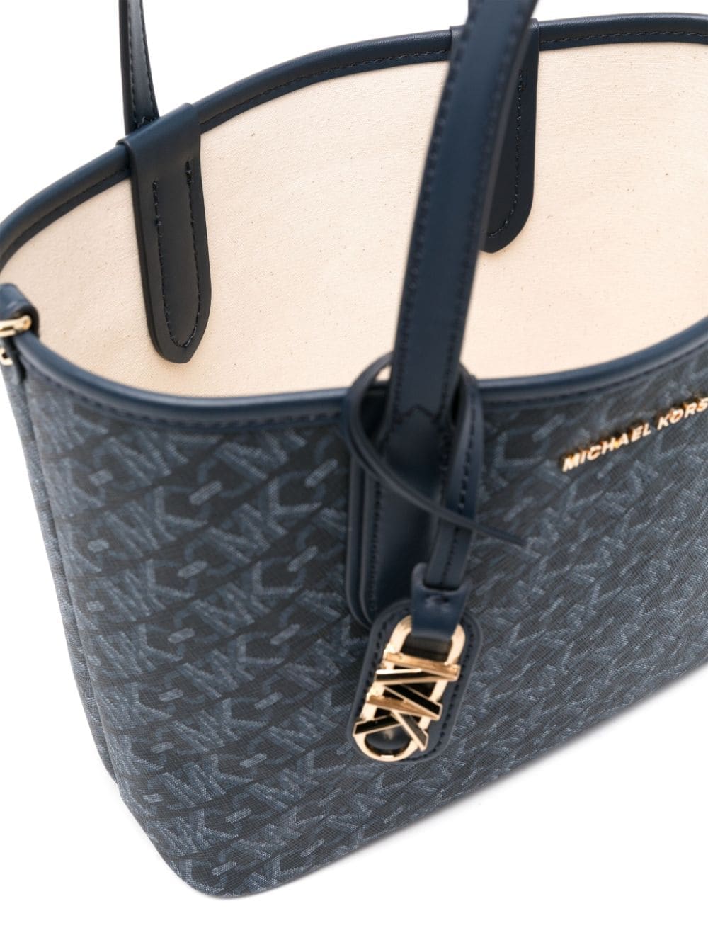 - gold-tone logo lettering to the front