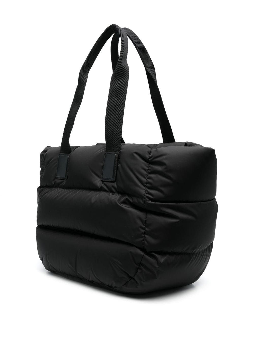 Inspired by Moncler's iconic down jacket, the Caradoc tote bag boasts a padded quilted construction. Boasting an architectural trapezoid shape, this accessory is completed with a signature logo patch on the front.