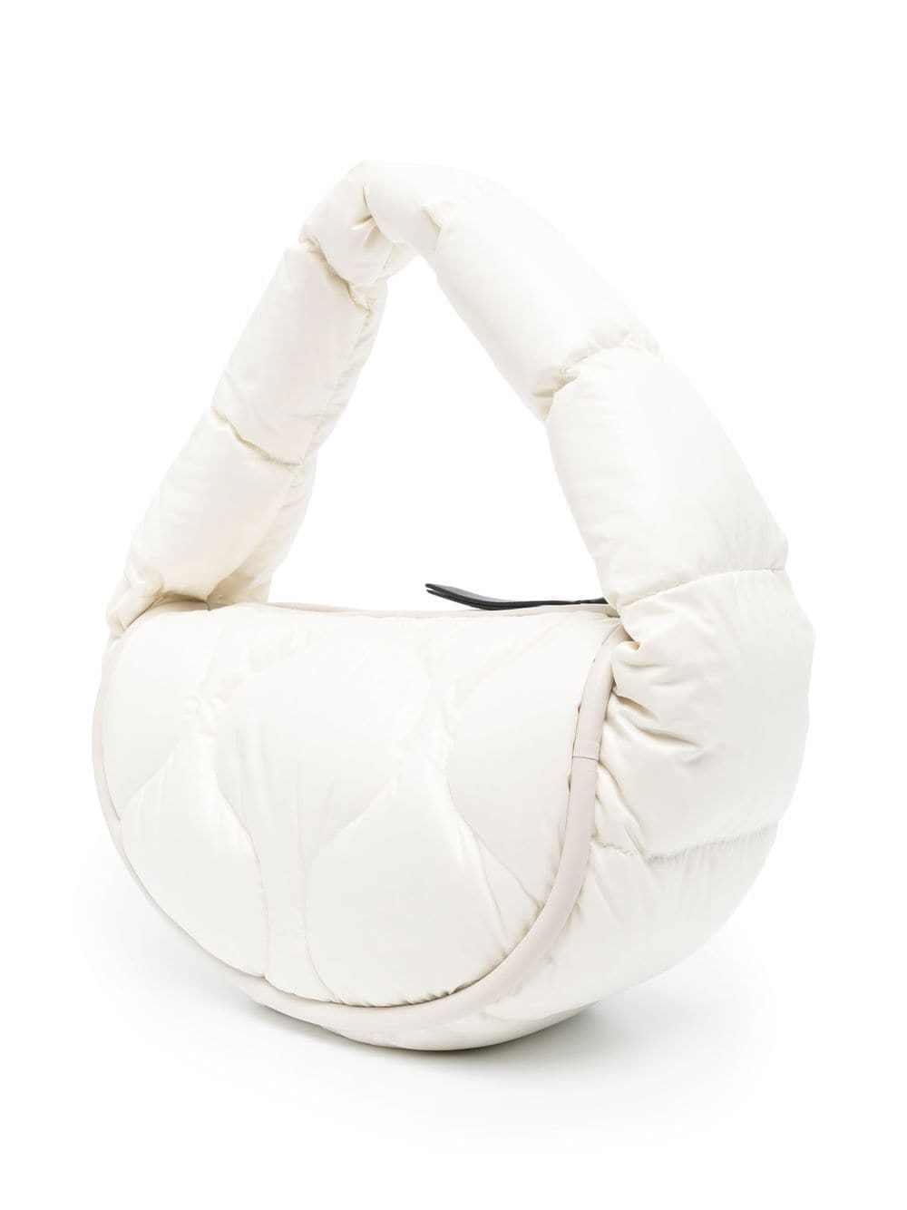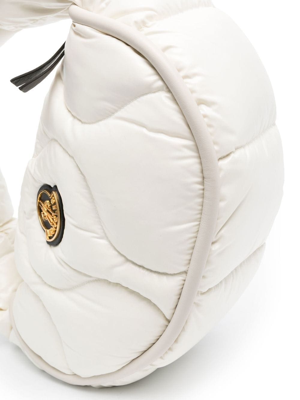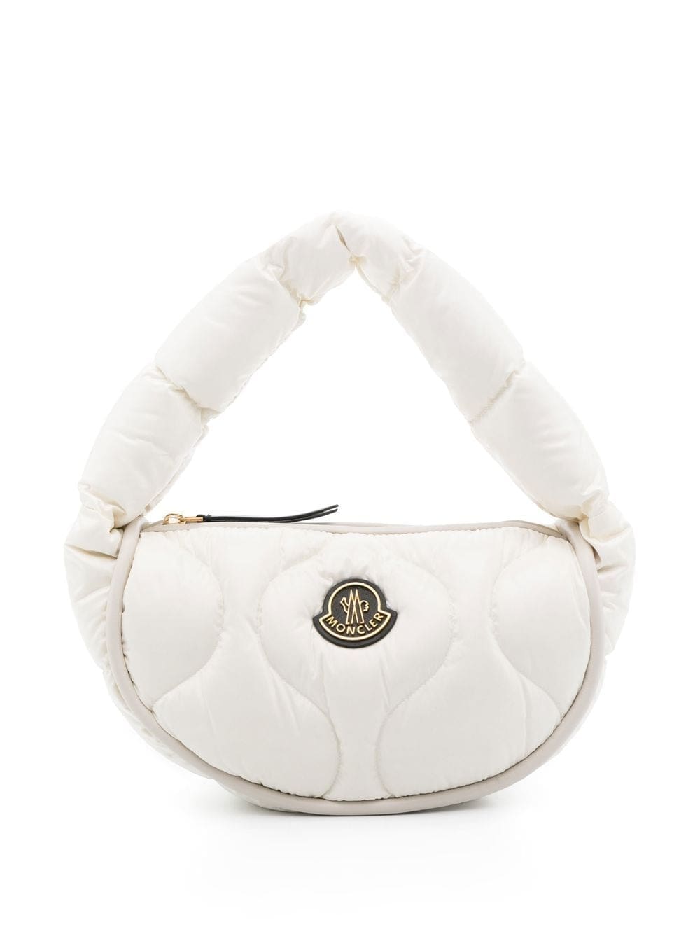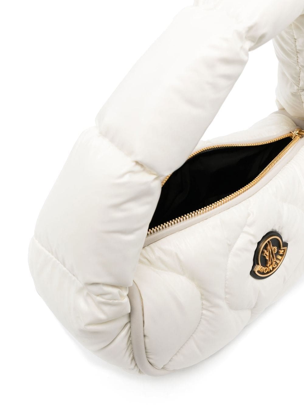 white quilted padded design logo patch to the front gold-tone hardware single shoulder strap top zip fastening main compartment internal zip-fastening pocket