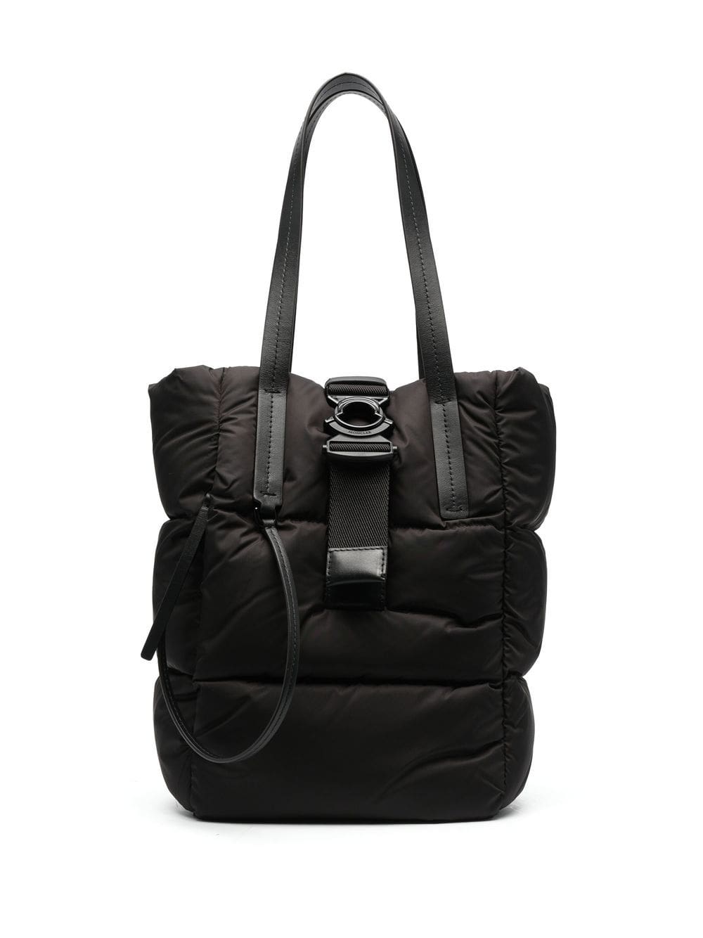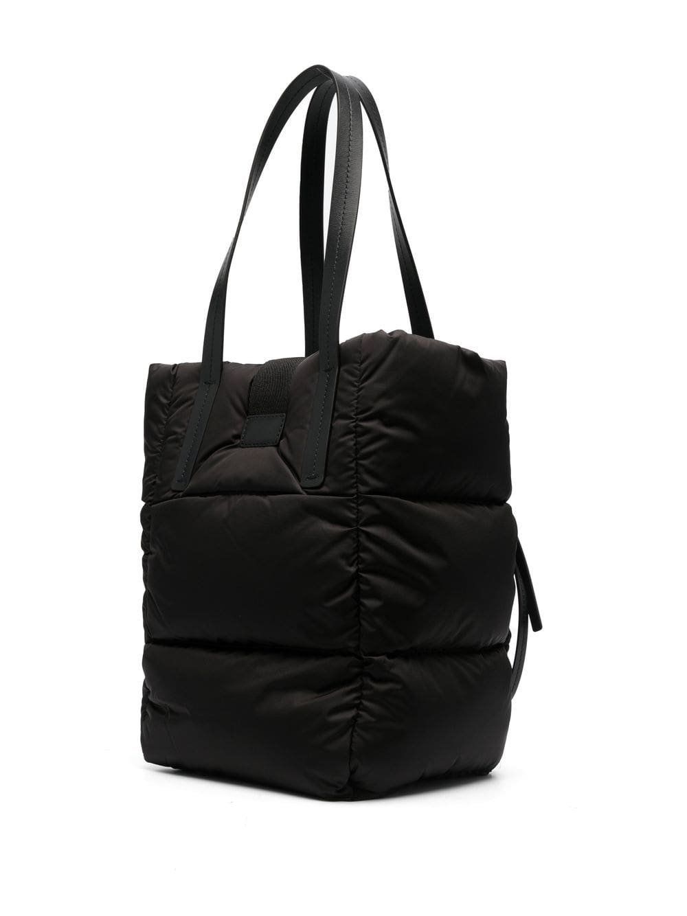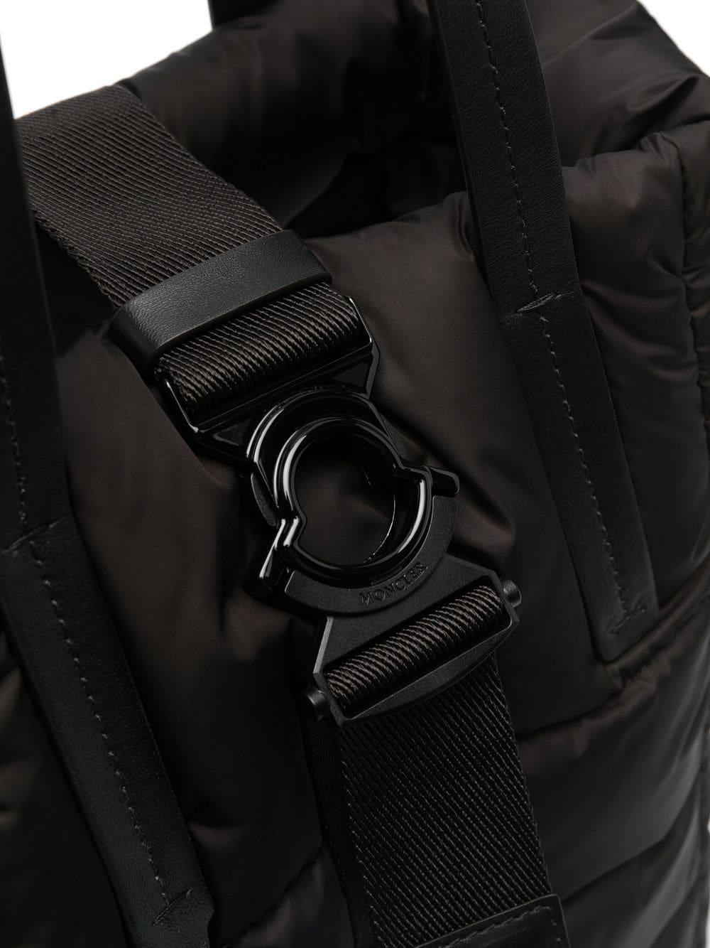 black calf leather padded design tonal logo plaque two long top handles main compartment