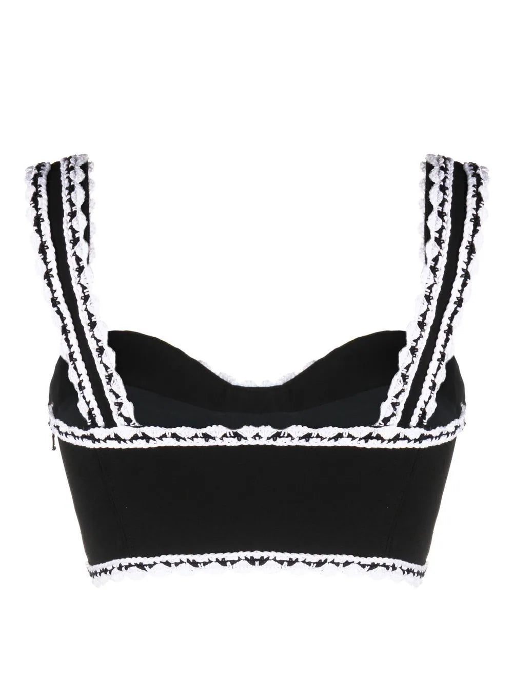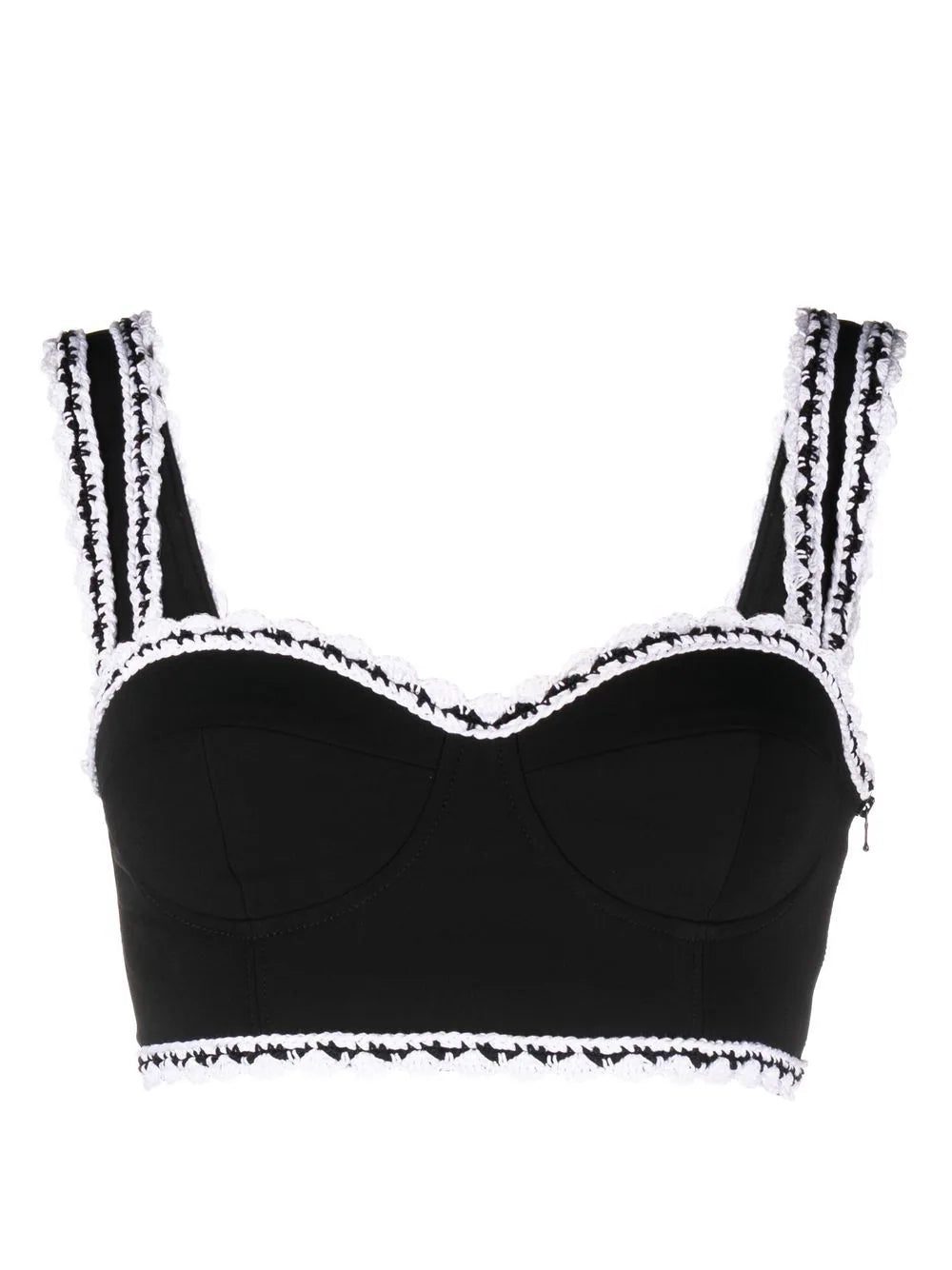 black cotton crochet panelling sweetheart neck straight hem Be sure before opening, as socks and hosiery can only be returned in their original, unopened packaging.
