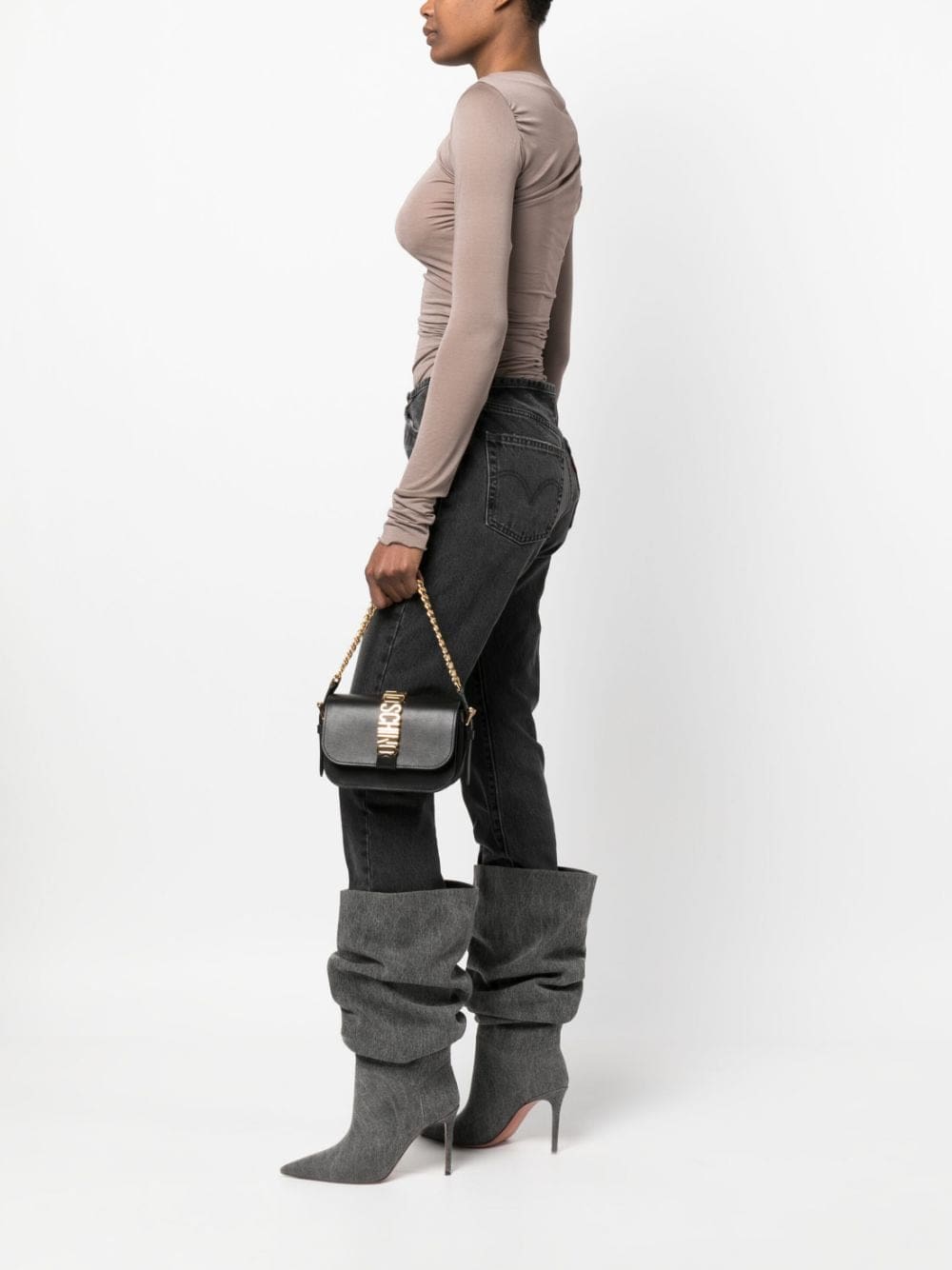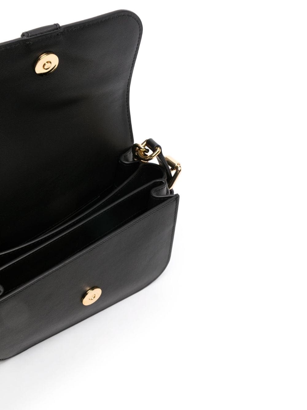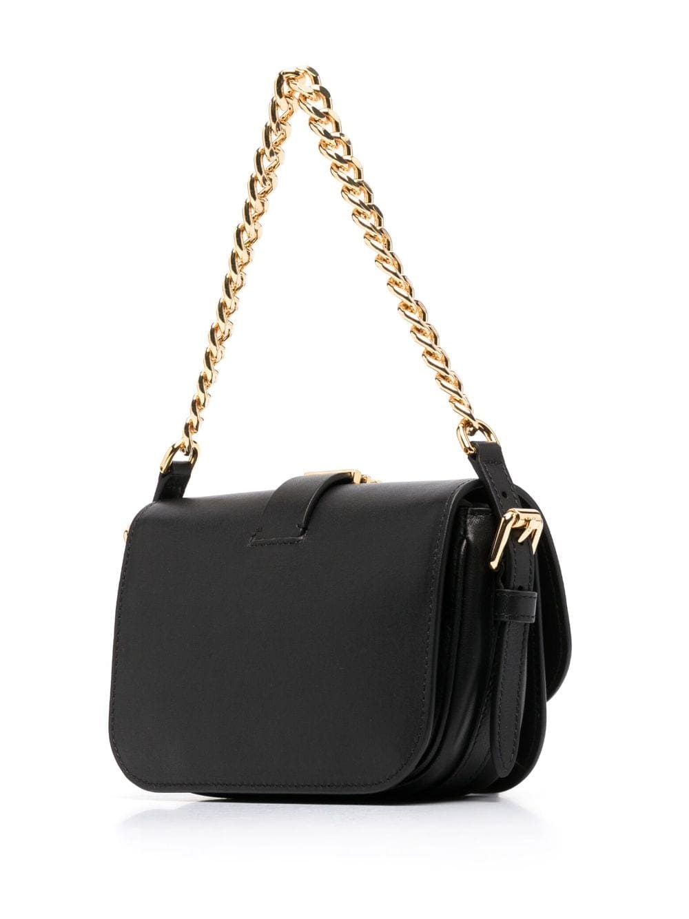 black calf leather gold-tone hardware logo plaque foldover top with press-stud fastening single chain-link top handle single shoulder strap partitioned compartment