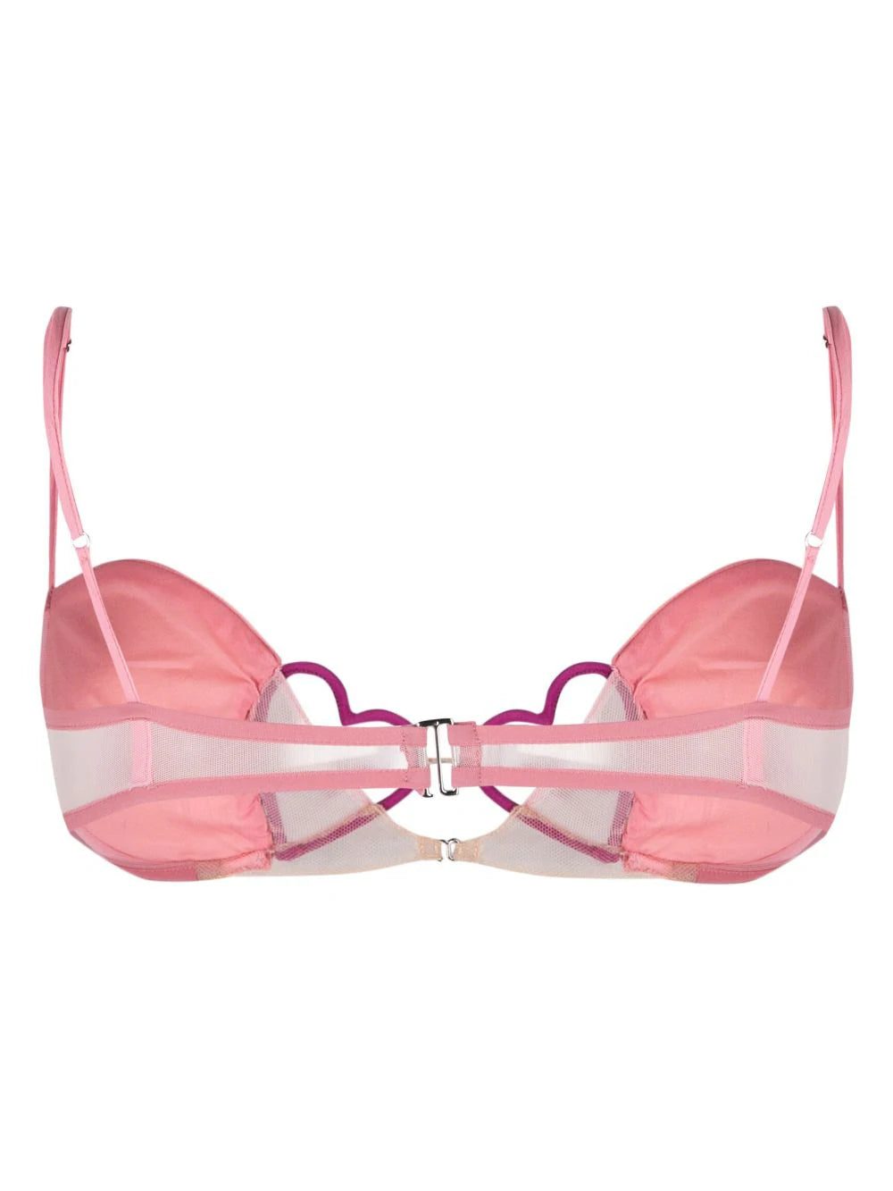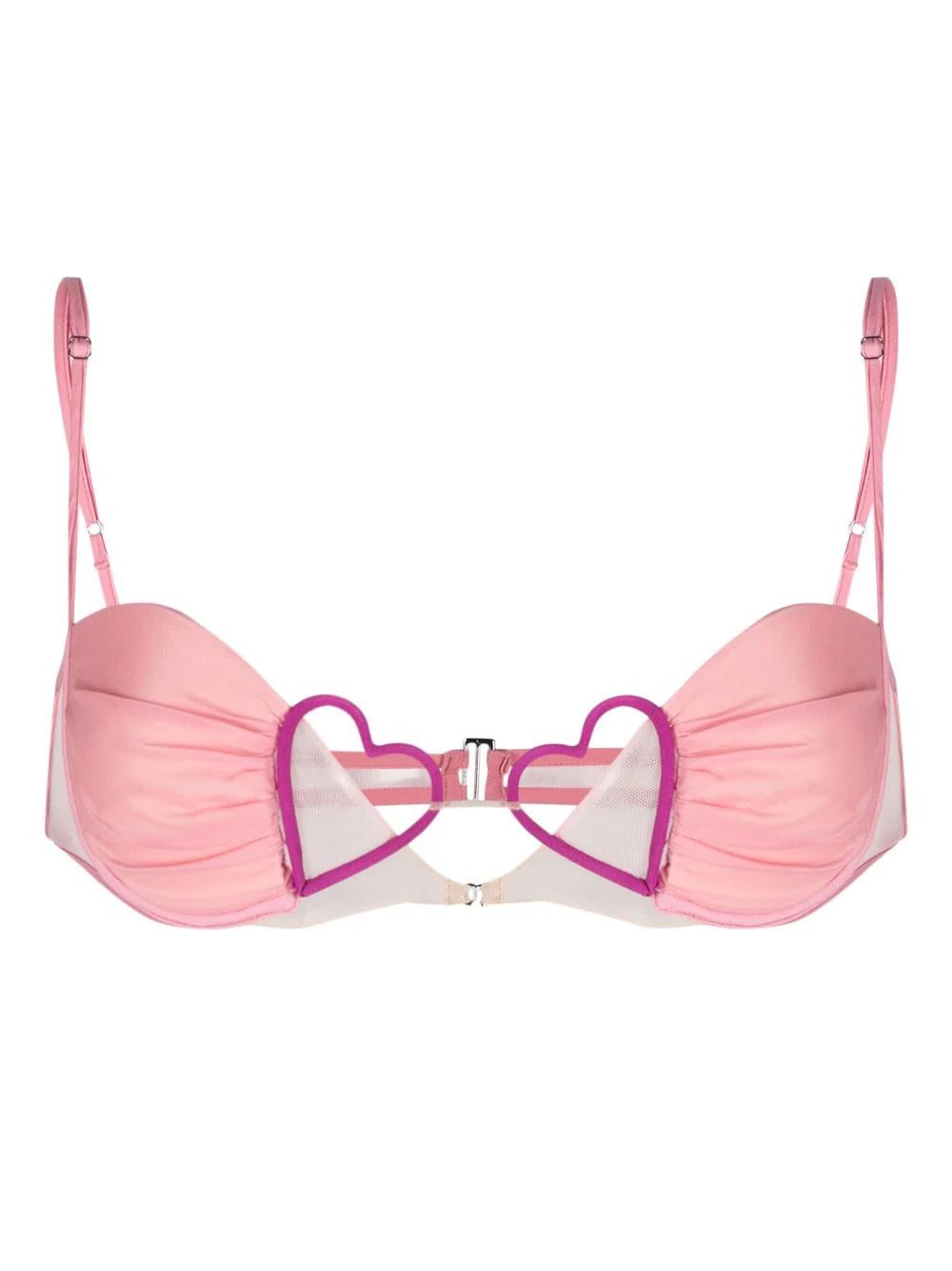 Albanian-born designer Nensi Dojaka pushes the boundaries of conventional lingerie with this pink bra from the SS23 collection. It's crafted with underwired cups, tulle panelling and slender straps, and elevated by two angled hearts at the front.