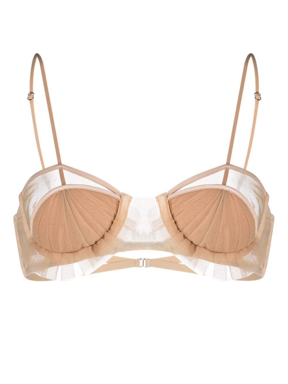 Created by London-based label Nensi Dojaka, this delicate bra is designed with carefully placed layers and ruffles. Semi-sheer panels crafted from a silk blend enhance its allure.