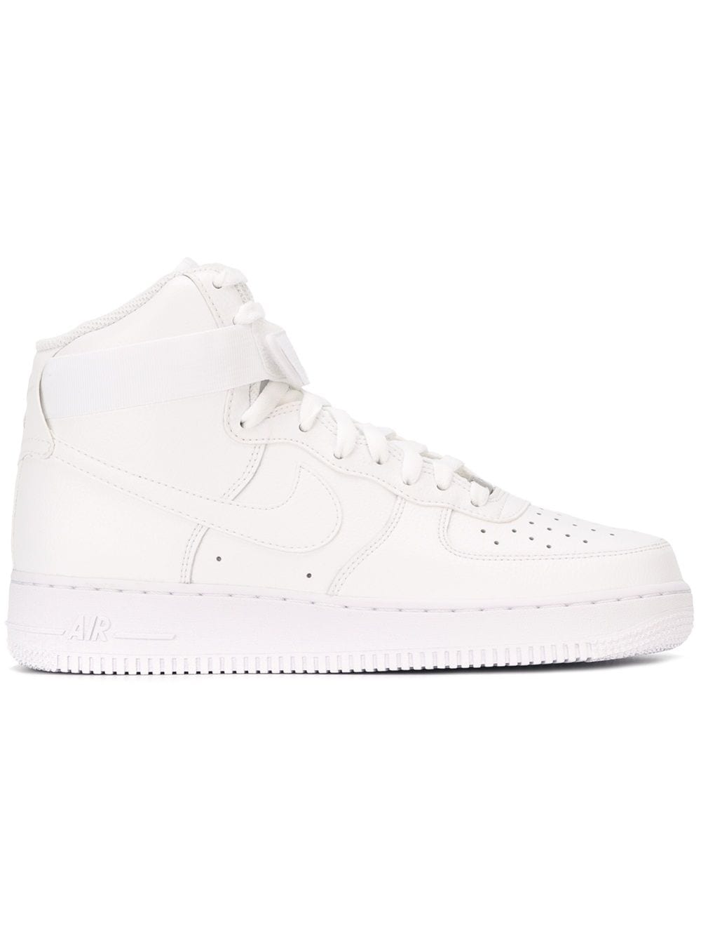 Nike's Air Force 1 model was the first basketball sneaker to showcase Nike Air technology. This iteration is presented in a crisp all-white colourway. The signature Swoosh logo lands on the sidewalls, whilst Nike branding is stitched on the heel. A white outsole completes the design.