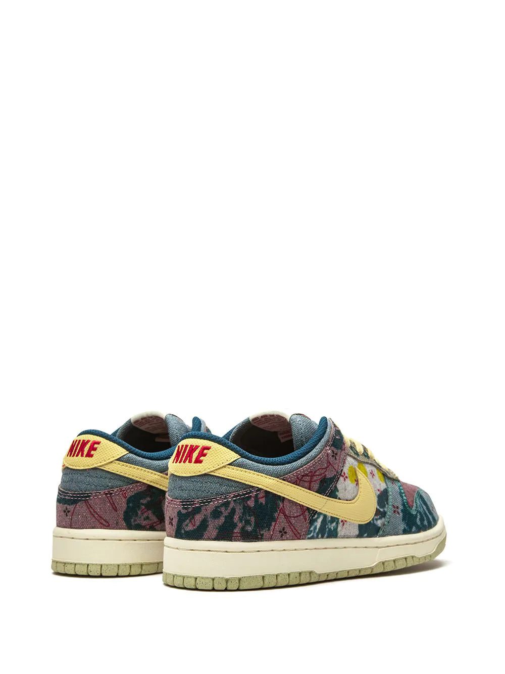 Let's see your green thumb. Inspired by the bustling city life and escaping into community gardens, these midnight turquoise leather and rubber Dunk Low SP "Community Garden" sneakers from Nike are all about togetherness. The low-top pair feature delicate floral prints, those that you may find across gardening gloves and aprons.